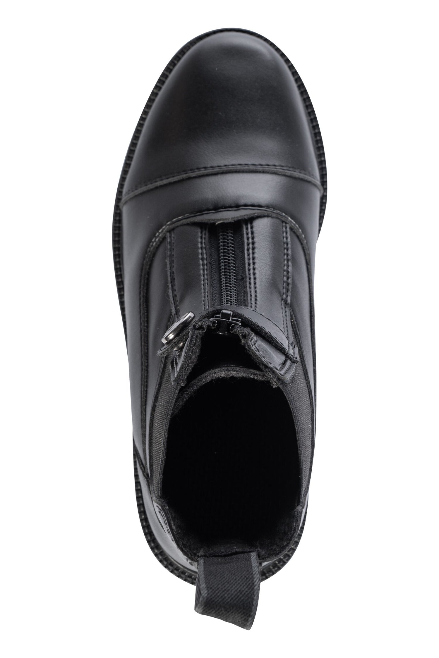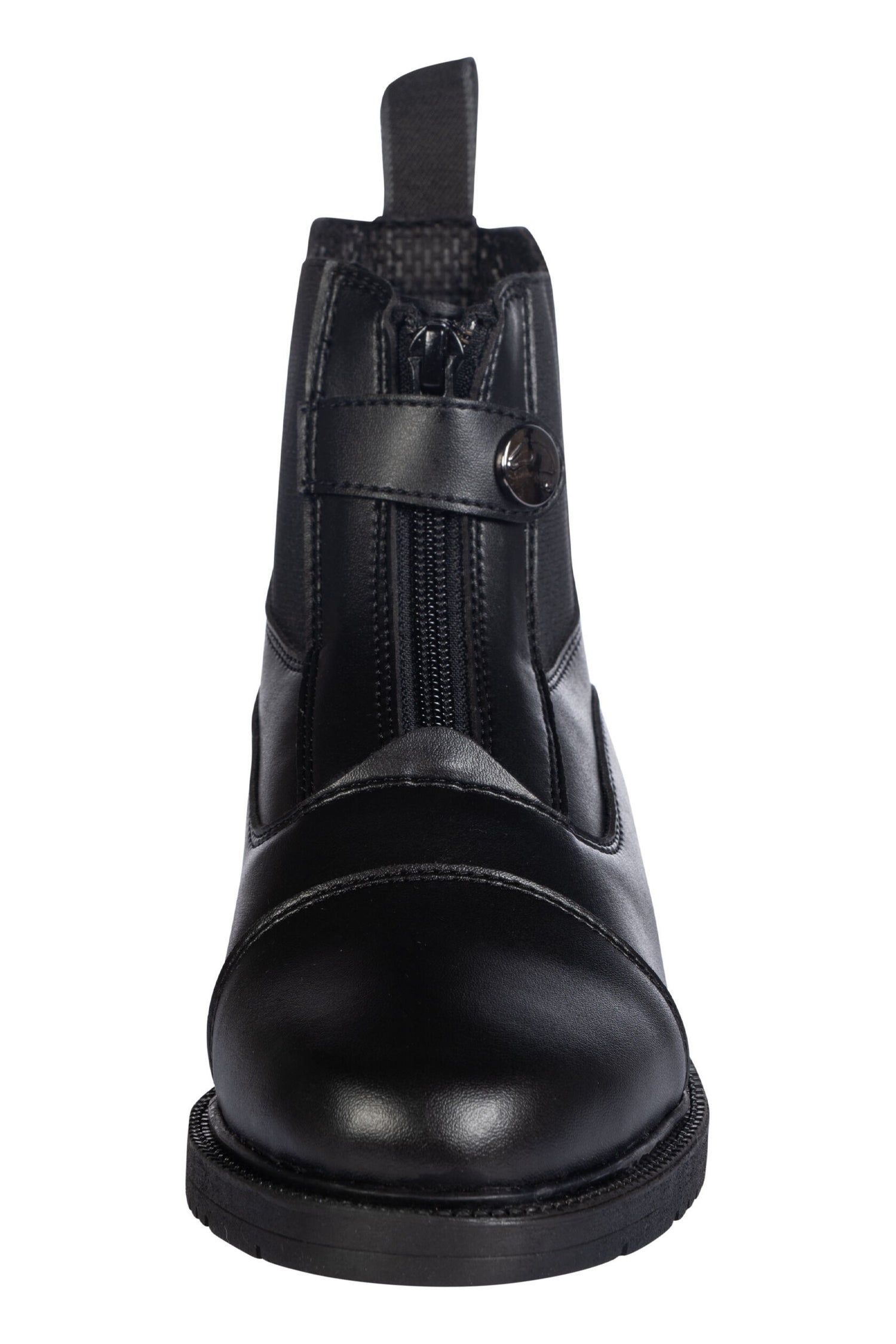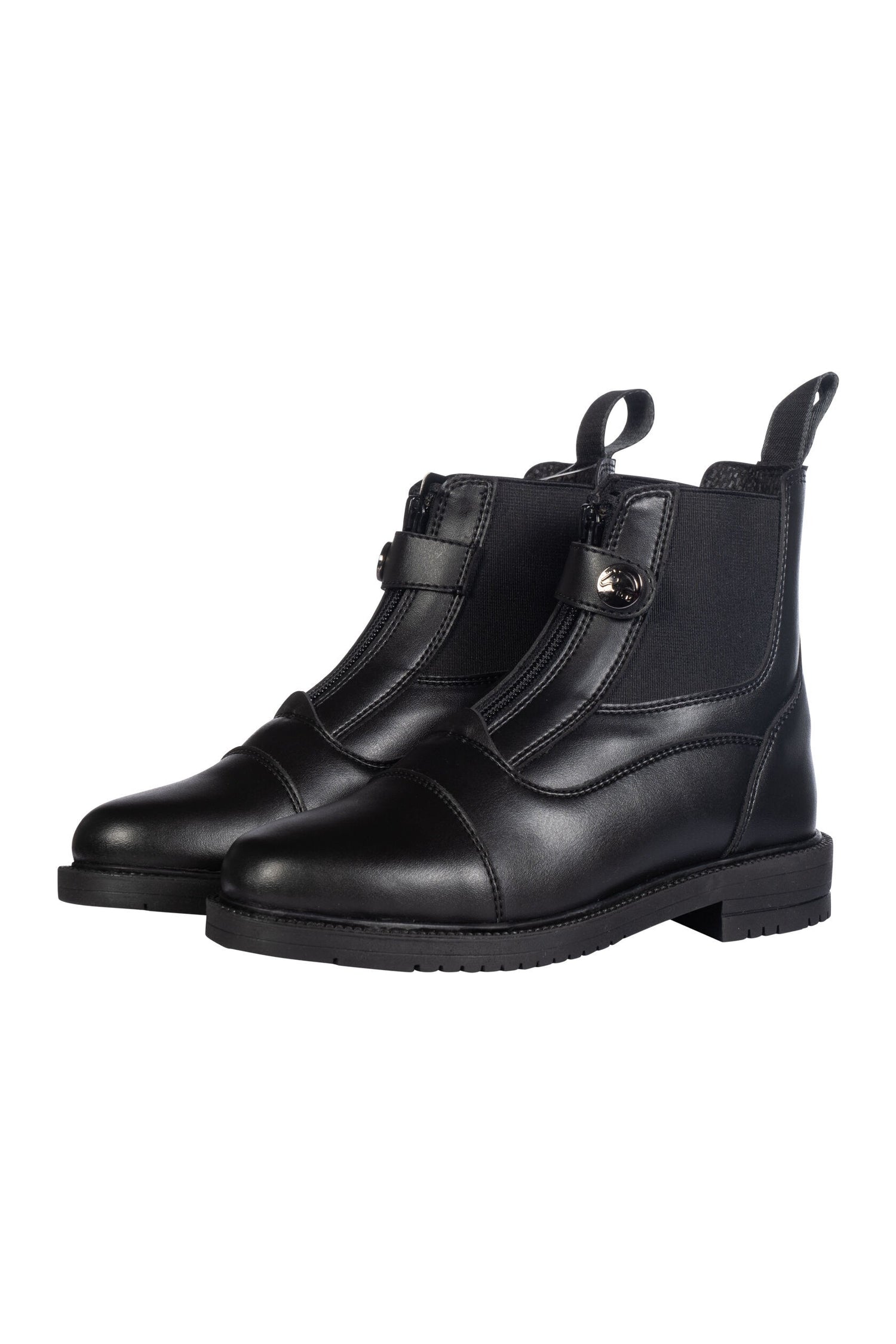 HKM Jodhpur Boots -Sina Kids - affordable horse riding boots for children. Designed with comfort and performance in mind, these short riding boots are the perfect choice for young equestrians thanks to their easy zip and button closure. Made from high quality, artificial leather, the boots offer durability and longevity, ensuring they withstand the rigors of children's stable and riding adventures. The sleek and modern design features a classic Jodhpur boot silhouette with a touch of contemporary flair, making them suitable for both the stable and the show ring.