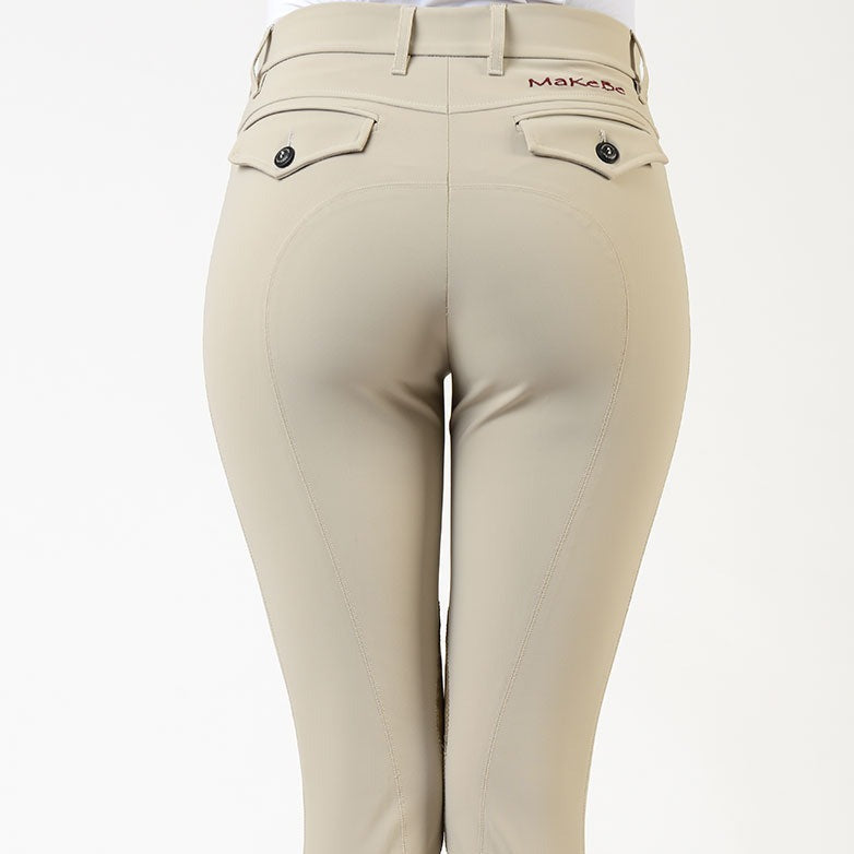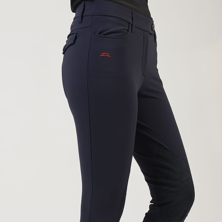 Women´s Breeches Audrey with Alcantara Grip - perfect for both the Hunter and Jumper rings, the Audrey breeches, from Italian brand Makebe are a must have for the competitive rider. Elegance and style combine with a side button and the Alcantara knee patch for improved grip in the saddle without restricting movement.