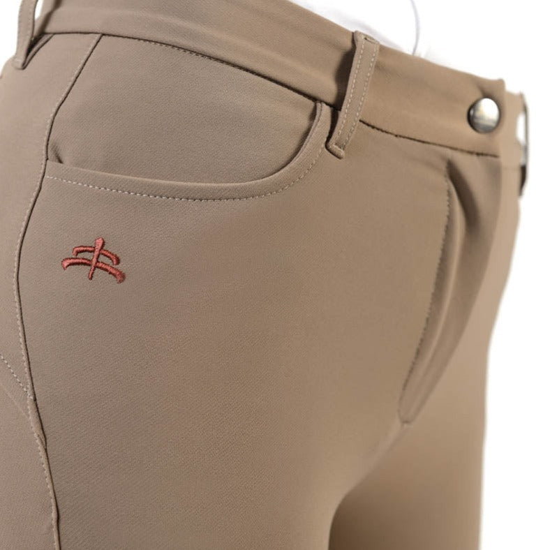 The gel knee patches on the breeches offer just the right amount of extra grip in the saddle without gluing you on. A perfect cut, the breeches sit perfectly on the waistline with the button slightly to the side for improved comfort when riding, whilst the soft, technical material ensures a superb fit.