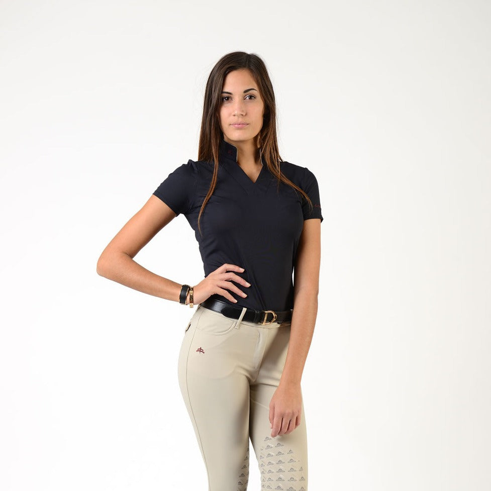 Women´s Polo Shirt Atena - the perfect polo shirt for daily riding. The Atena polo shirt from Italian brand MaKeBe is made from superior cotton and technical materials for extreme comfort. The stylish design with standing collar ensures you'll look your best in and out of the saddle.