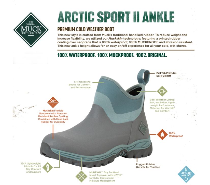 Muck Boots Women's Arctic Sport II Ankle - The ideal companion for "quickly" feeding the animals in the stable in the evening. Quick to slip on, combined with a grippy sole to keep your footing even on slippery floors.