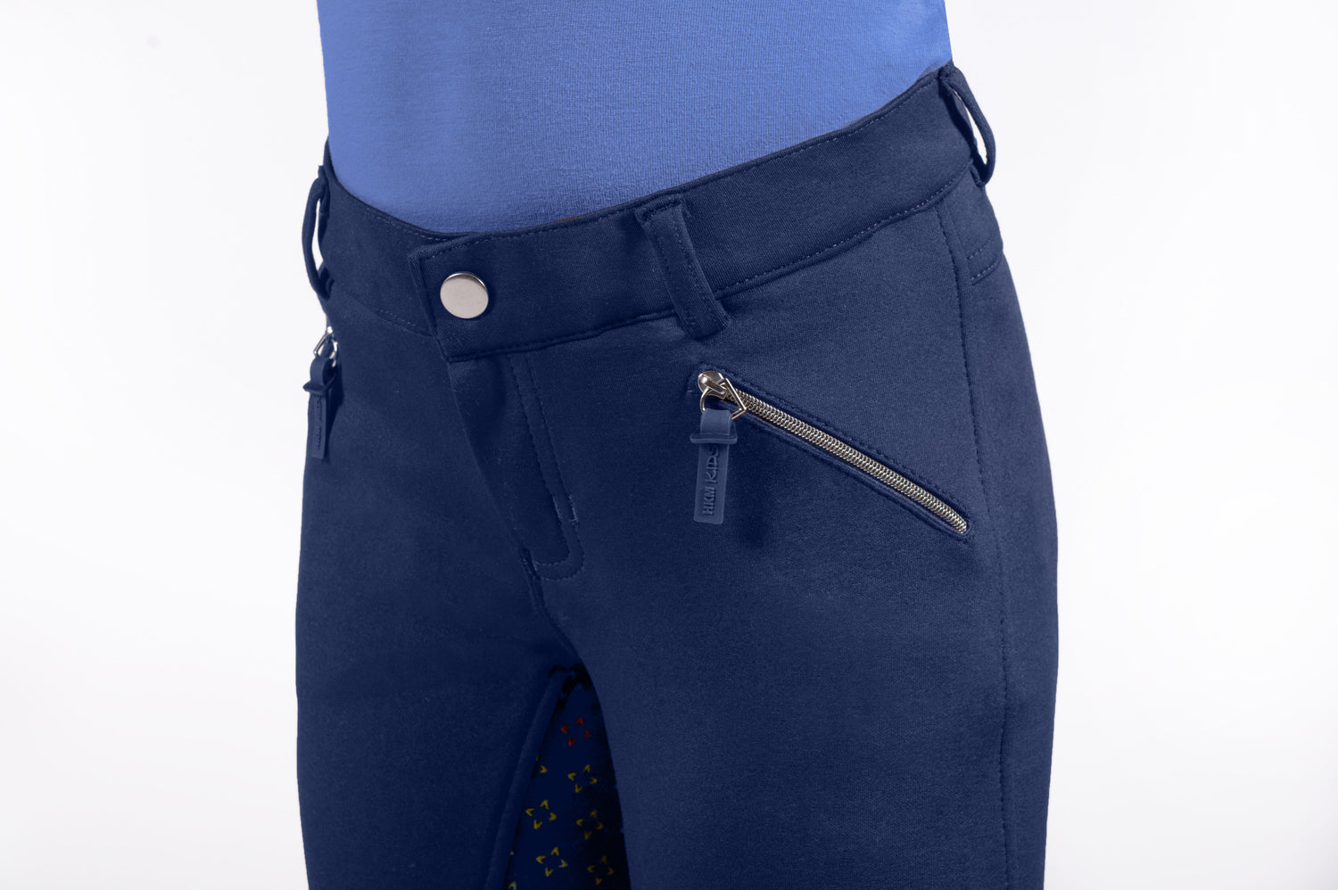 HKM Kids Riding Breeches Silicone Full Seat Mia - offer young riders the perfect combination of comfort, durability, and performance. Made from bi-elastic material, the breeches adapt to every movement in the saddle and provide full freedom without restricting comfort. The silicone full seat ensures a secure grip for added stability, making them ideal for training, lessons, or leisure riding.