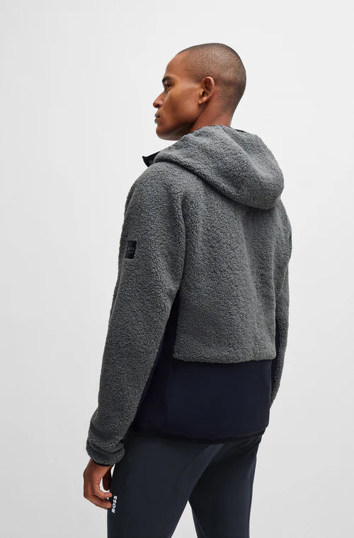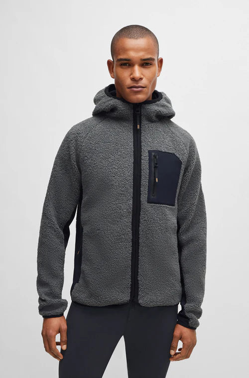 Boss Equestrian Men's Hybrid Teddy Puffer Jacket Rusel - this modern men's sweat jacket is ideal for riding in on cooler days. Made from a fashionable mix of teddy, filler and high tech fabric, the sweat jacket has a large hood and a front chest pocket for convenience and a great look. Two front zipped pockets allow you to carry your essentials with you when riding, whilst the wind and water repellent material make it a great choice for the colder months.