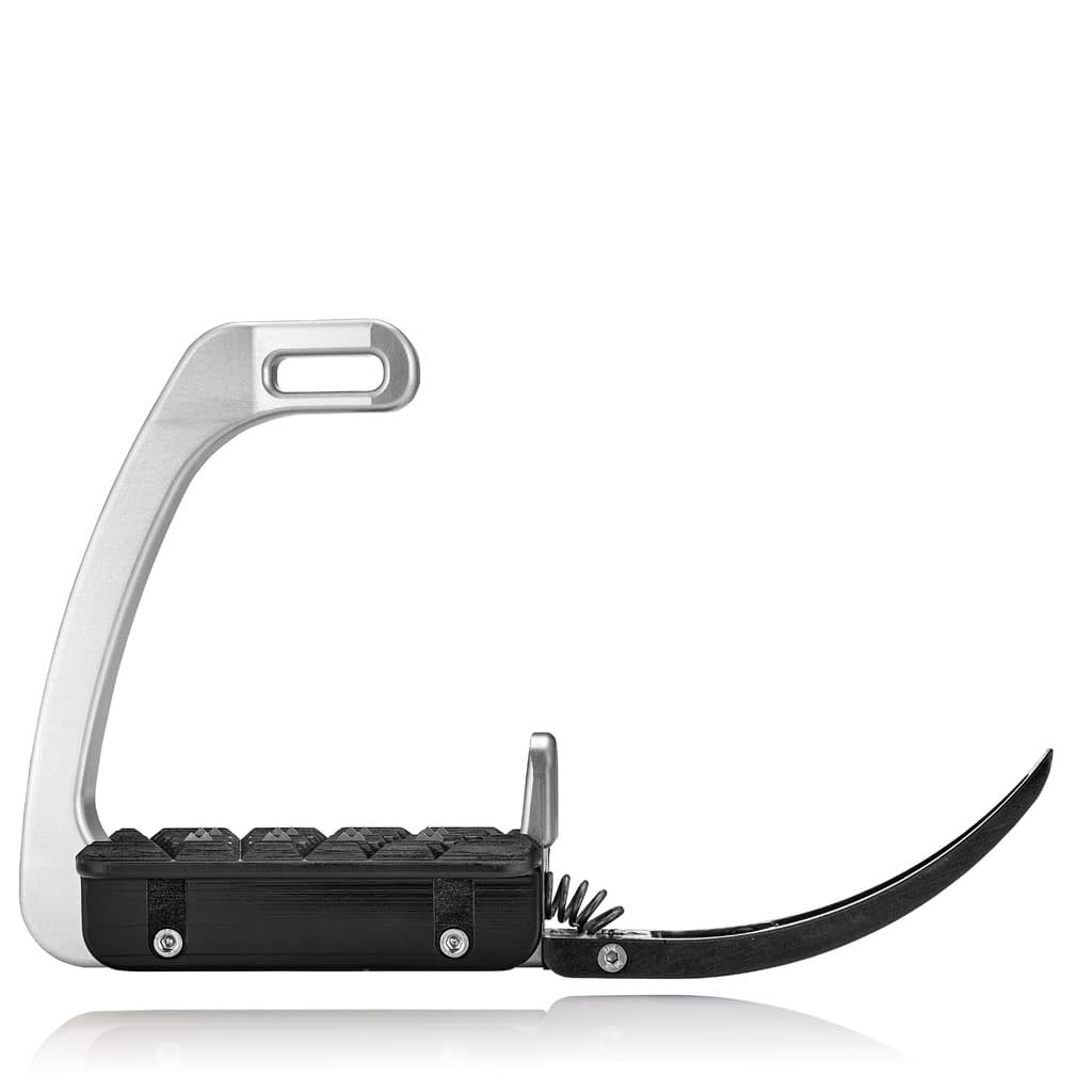 The inclinable arch on the stirrups opens 90° out to the side and also rotates a full 360° making these stirrups in a league of their own when it comes to safety. In the event of a fall the arch opens to release the foot. Whether you fall forwards, backwards or to the side the stirrup will release.