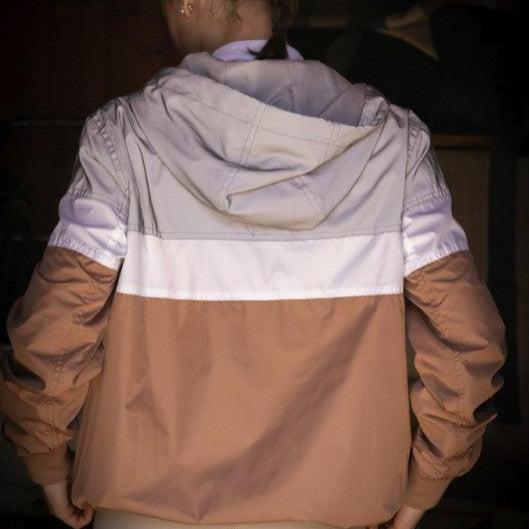 Penelope Celecce Women's Windbreaker - a water repellent and windproof jacket that will make your bad weather days so much brighter. The Penelope collection jacket is made of a very light and soft fabric, which makes it perfect for rainy spring days. It goes well with any outfit, whether it be riding breeches or Jeans. The loose fit will charm any body type. Furthermore, the design speaks for itself. The colour block look is very trendy and the Penelope horse logo is embroidered on the chest area. The wide hood can be tightened with the cords and two zip pockets ensure you have enough room for personal belongings. Overall, a stylish yet practical rain jacket that's definitely always good to have!