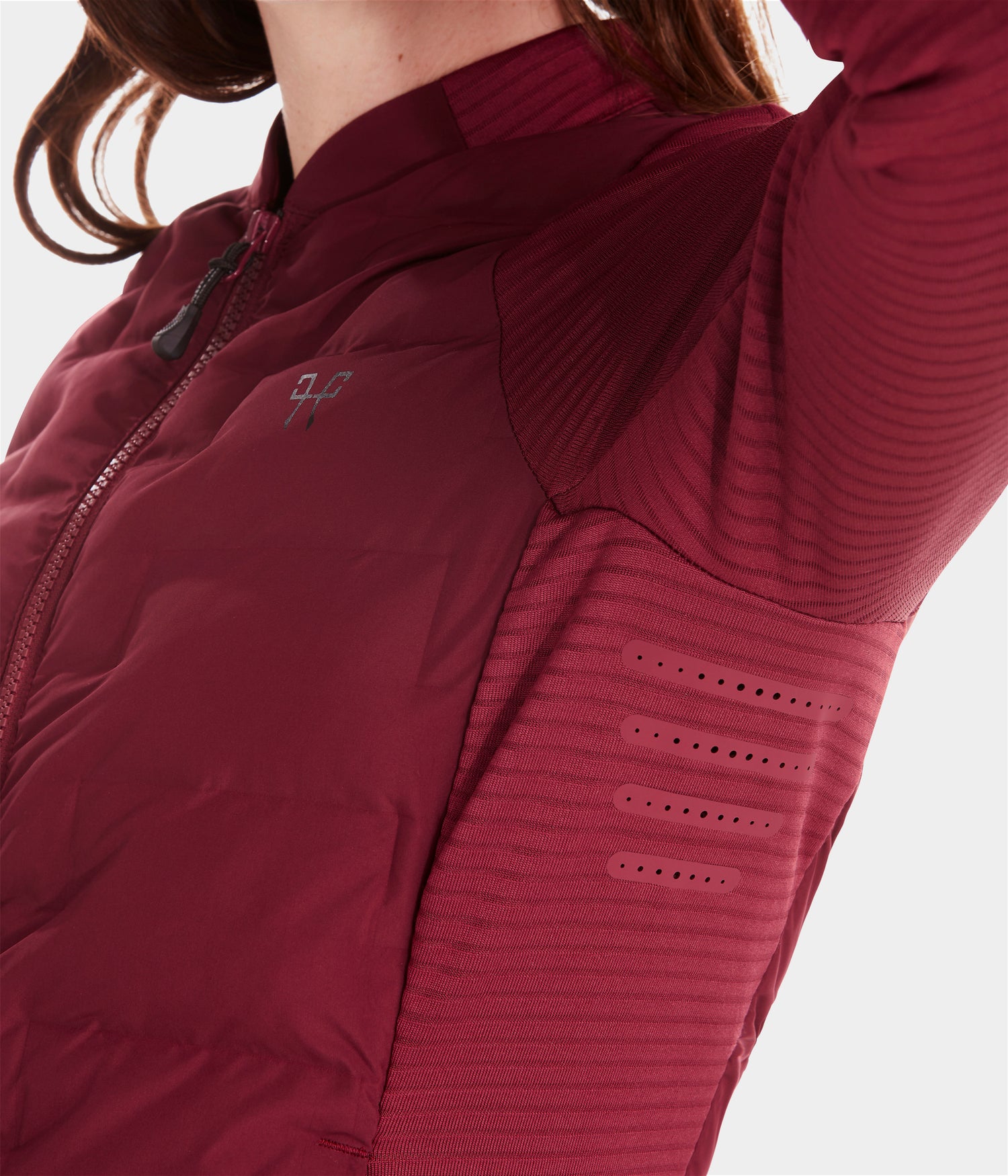 - Breathable fleece on arms and shoulders with micro-vents for ventilation
