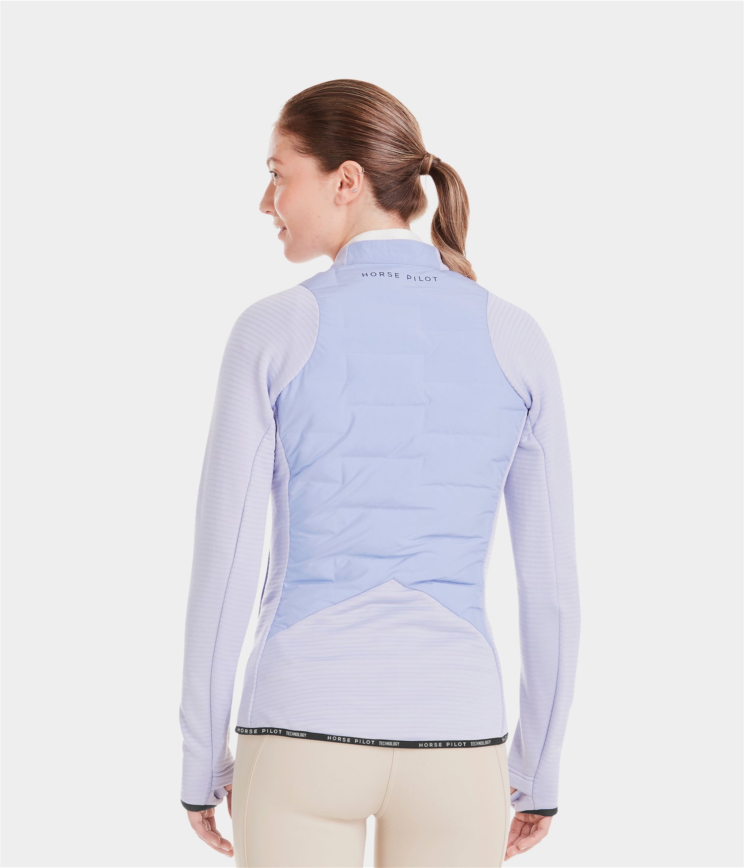 Horse Pilot Women´s Jacket Storm - The Storm jacket by Horse Pilot is a versatile garment combining warmth and breathability for exercising in cool or cold weather. To equip you for whatever the weather throws at you and plenty of hard work on horseback horse pilot has created the Storm: a hybrid thermo-regulating jacket which retains heat without the risk of overheating when you exercise. This lightweight jacket can be worn over a T-shirt in hot weather or under a vest in wet and cold weather. The combination of different materials responds to the needs of each part of a rider’s body. The polyester down padded heat-activated panels warm the chest, stomach and back and protect from the wind. The lightweight pleated-mesh and incredibly stretch fleece sections on the arms, shoulders and sides allow moisture to wick away from the body and provide great freedom of movement. The micro-perforations under the arms and on the sides promote the circulation of air during exercise.