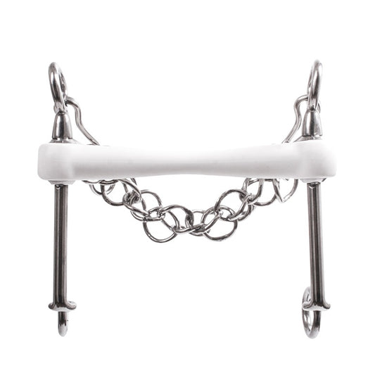 Bits from the Inno Sense collection can be used for all horses, but are particularly suitable for young horses and horses with sensitive mouths. The plastic used is FDA-approved, which means that the material is non-toxic and contains no plasticizers. Experience shows that horses ridden with an Inno Sense mouthpiece follow the hand easily and accept the bit quickly. Inno Sense mouthpieces are considerably softer than metal mouthpieces. This is what most horses like about these bits. If the bit lies on the layers correctly, damage to the mouthpiece is unlikely, but not impossible due to, for example, sharp edges on the teeth.