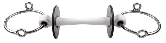 The Inno Sense Mullen is a straight bar that slightly bends forward. This mouthpiece is fabricated of synthetic material. The bit has a rigid core that makes the mullen bar not flexible but the material around it still gives the bit a soft touch.