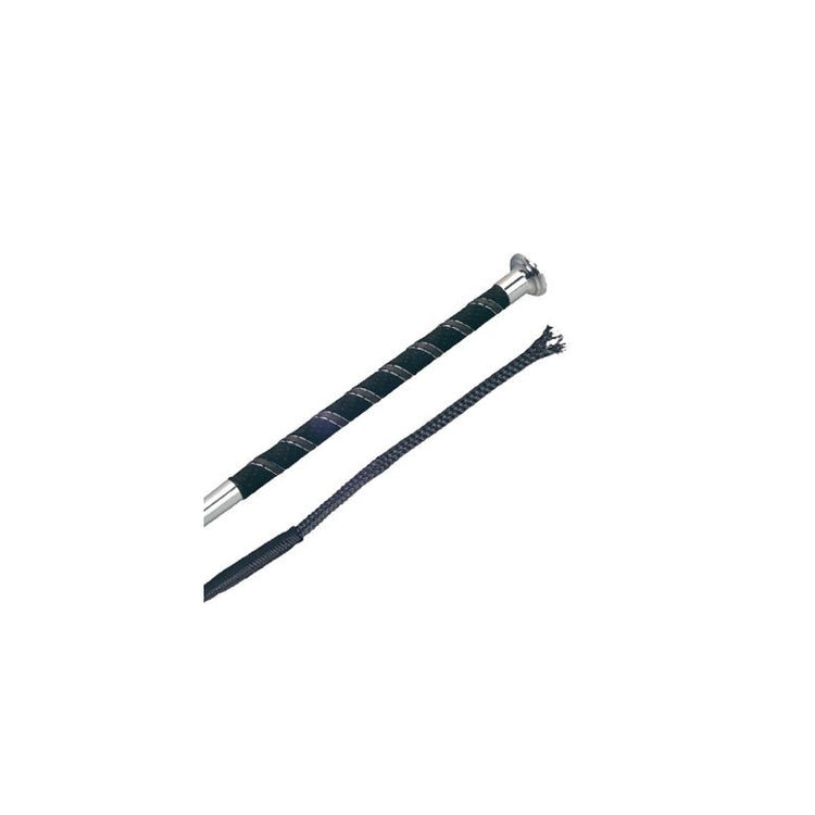 Soft Handle Dressage Whip - experience unparalleled comfort and control with the Soft Handle Dressage Whip by Fleck. This whip features a braided nylon-covered fiberglass core, offering exceptional durability and flexibility for all your dressage needs. The soft and grippy leather handle ensures a secure and comfortable hold, enhancing your control during use. The metallic button cap adds a touch of elegance and additional stability to the whip. Ideal for both training and competition, the Soft Handle Dressage Whip by Fleck is the perfect choice for riders seeking superior quality and comfort.