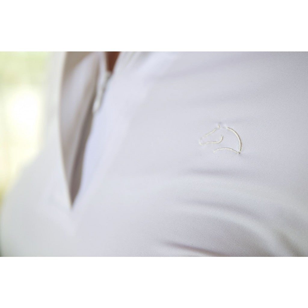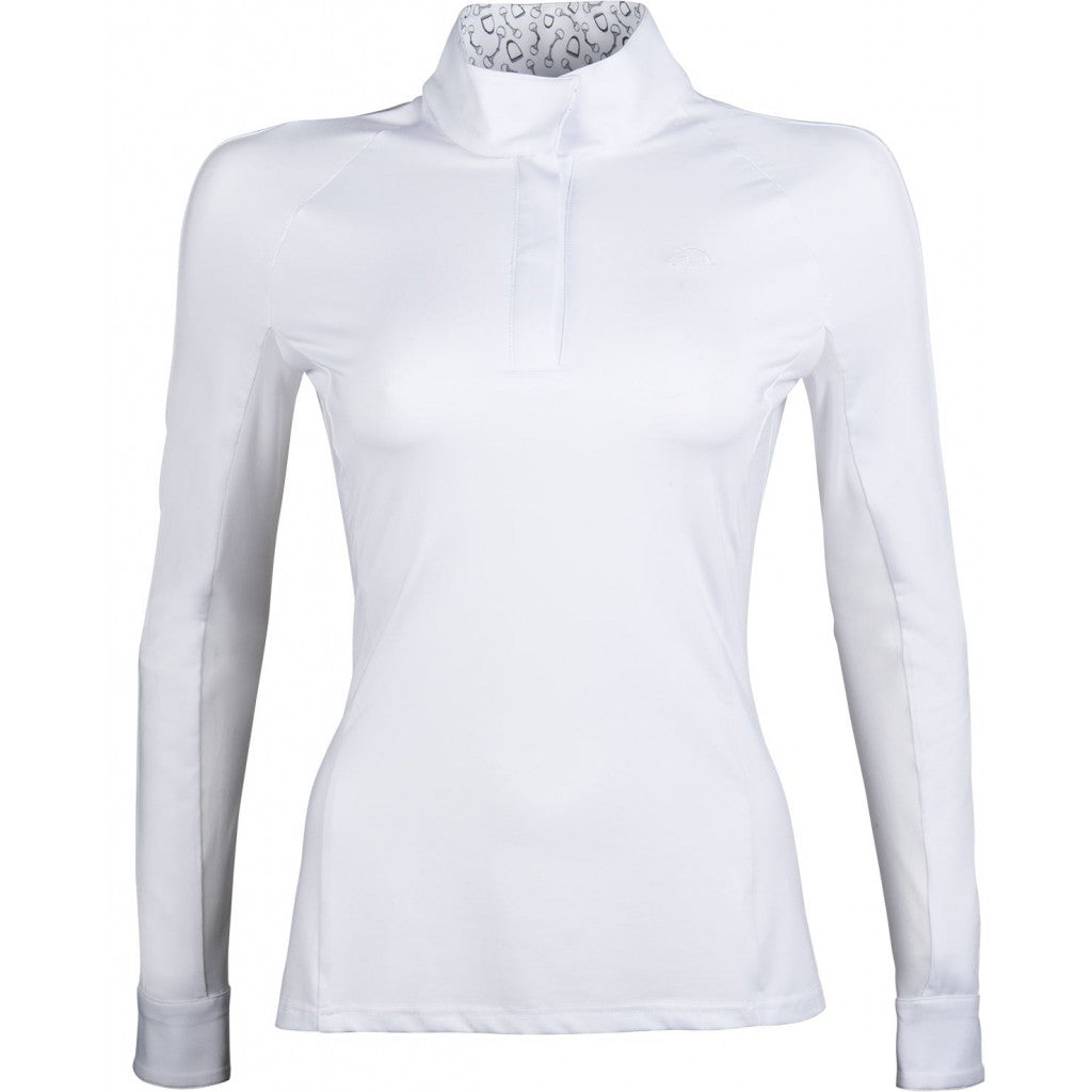HKM Competition Shirt Hunter - long-sleeve competition shirt with a hidden playful detail - inside part of the collar and sleeves decorated with bits and stirrups motives. Roll up your sleeves and open up your collar to reveal how unique this shirt is!