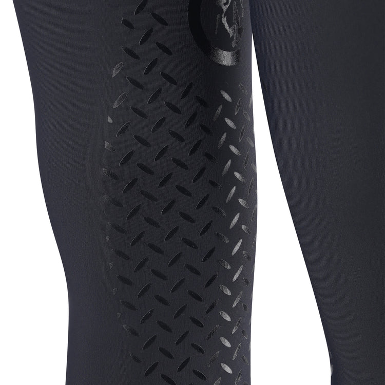 Gemaakt van een zachte, ademende stof met precies de juiste hoeveelheid stretch, bieden ze de hele dag bewegingsvrijheid, of ze nu rijden of helpen in de stal. De flatterende, slanke pasvorm wordt versterkt door een dunne, geperforeerde onderbeenopening die oncomfortabele ophoping voorkomt en drukpunten onder rijlaarzen elimineert. Een siliconen kniegrip zorgt voor stabiliteit in het zadel en biedt volledige bewegingsvrijheid, terwijl de twee achterzakken ideaal zijn voor kleine traktaties of andere benodigdheden.