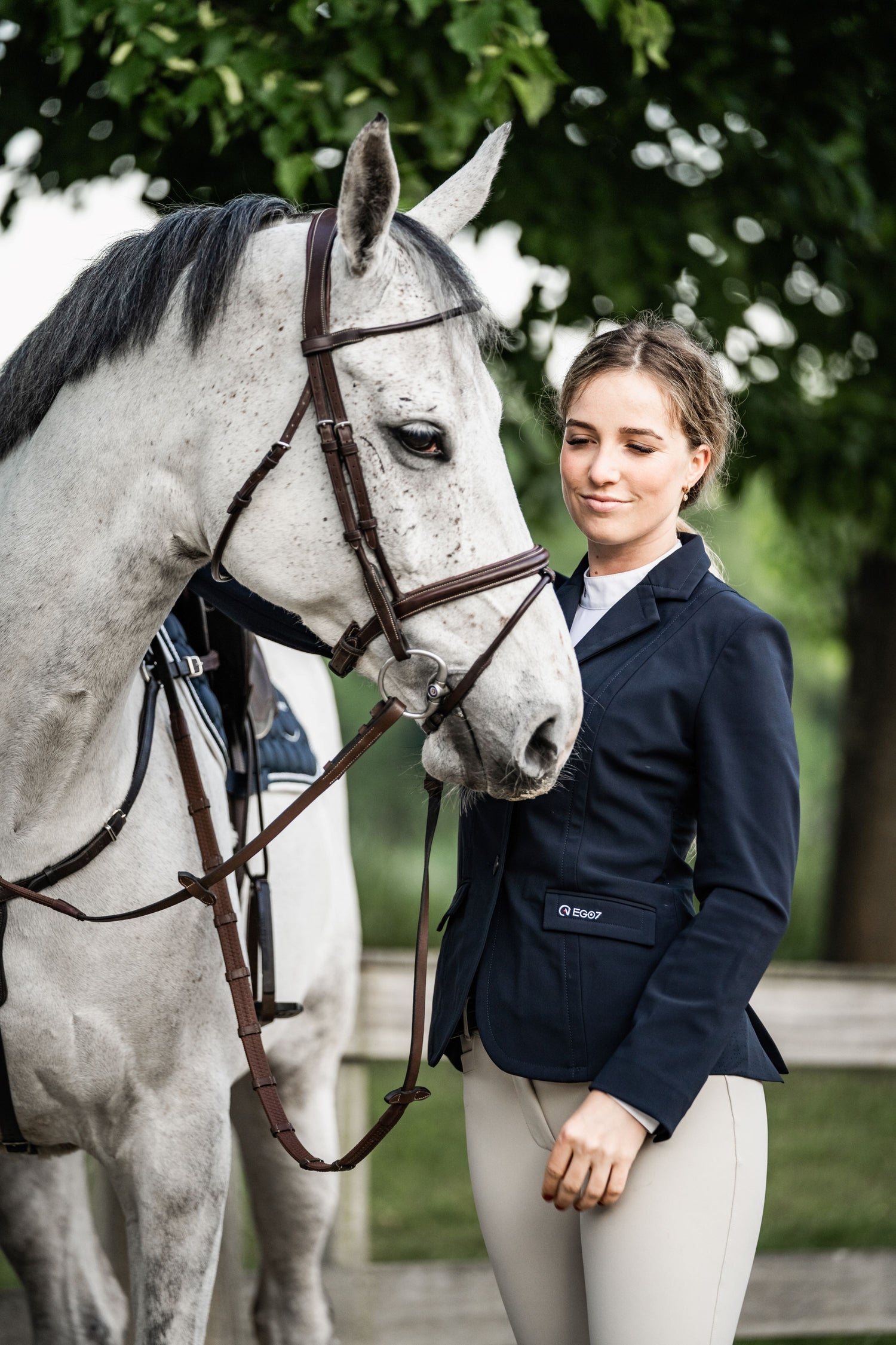 Ego7 Be Air Ladies Show Jacket - never has a women's competition jacket combined such a high level of breathability and performance with impeccably refined looks. This new show jacket from Italian brand Ego7 is truly taking rider comfort and style to the next level thanks to the modern design of this high performance jacket. The incredibly lightweight, stretch fabric allows complete freedom of movement, whilst cleverly inserted holes in the sides and under the arms create an in jacket cooling system without compromising the luxurious looks of the jacket which can often be the case with mesh inserts.
