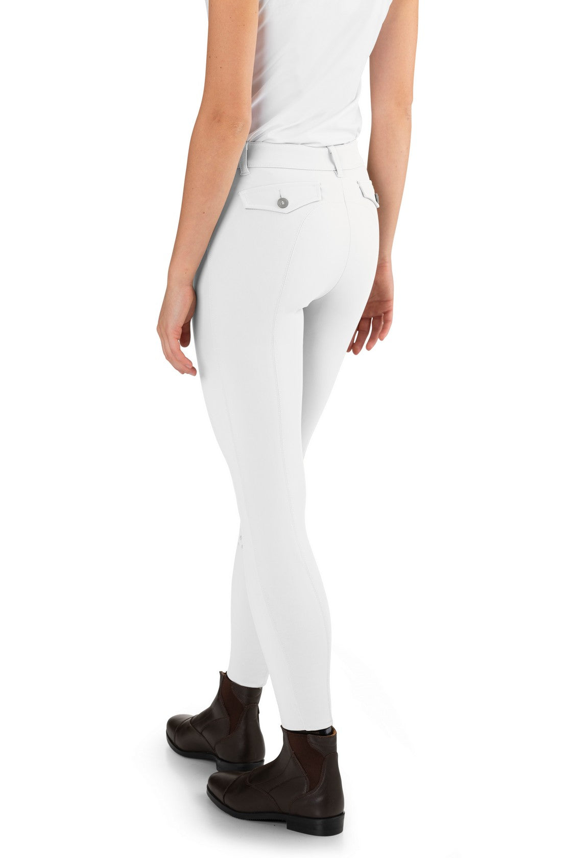 Ego7 Women´s Breeches Jumping PT - these incredibly stylish women's breeches offer superior comfort, flattering looks and outstanding performance. Designed with the riders needs in mind, the breeches are produced from 100% Jersey and made in Italy for superior quality. Stylish buttoned back pockets create a striking silhouette whilst the super stretch ensures unrestricted movement, support and shape retention. Innovative grip on the inside of the waistband ensures your shirt will not slip out whilst riding.