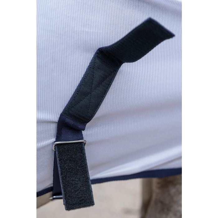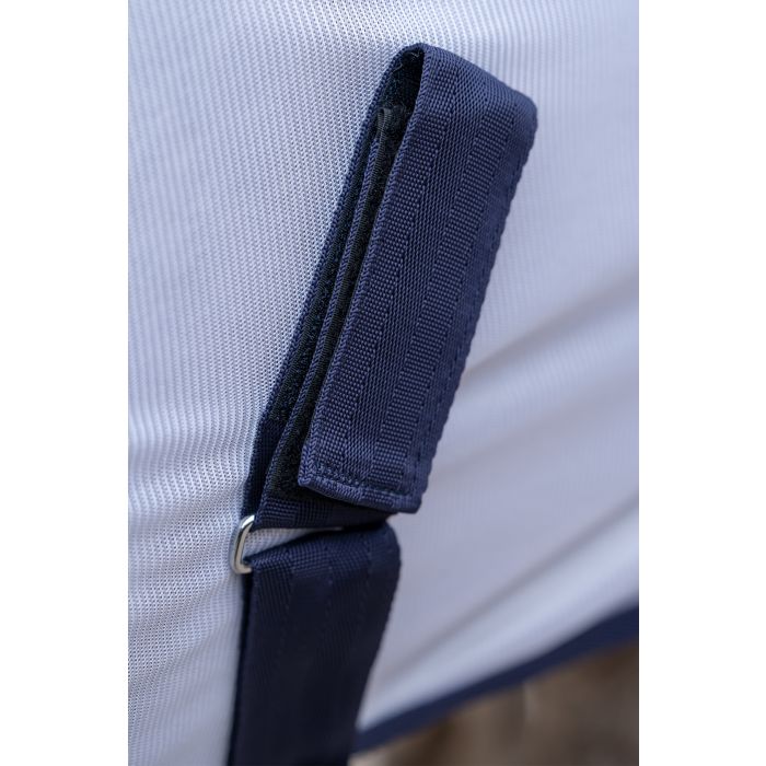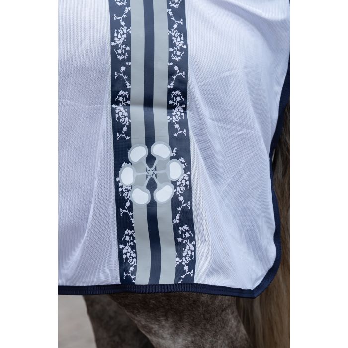 HKM Vliegendeken Bloomsbury - deze stijlvolle vliegendeken past bij de andere producten van de HKM -Bloomsbury- collectie. De deken beschermt uw paard goed tegen storende vliegen en insecten. Verder zit hij goed door een beschermende schoftbeschermer, verstelbare en afneembare kruissingels, een eenvoudige borstsluiting en een staartriem. De deken is gemaakt van een hoogwaardig anti-scheur materiaal, dat beschadigingen voorkomt en wordt geleverd in een tas waarmee u hem gemakkelijk ergens in de winter kunt opbergen.