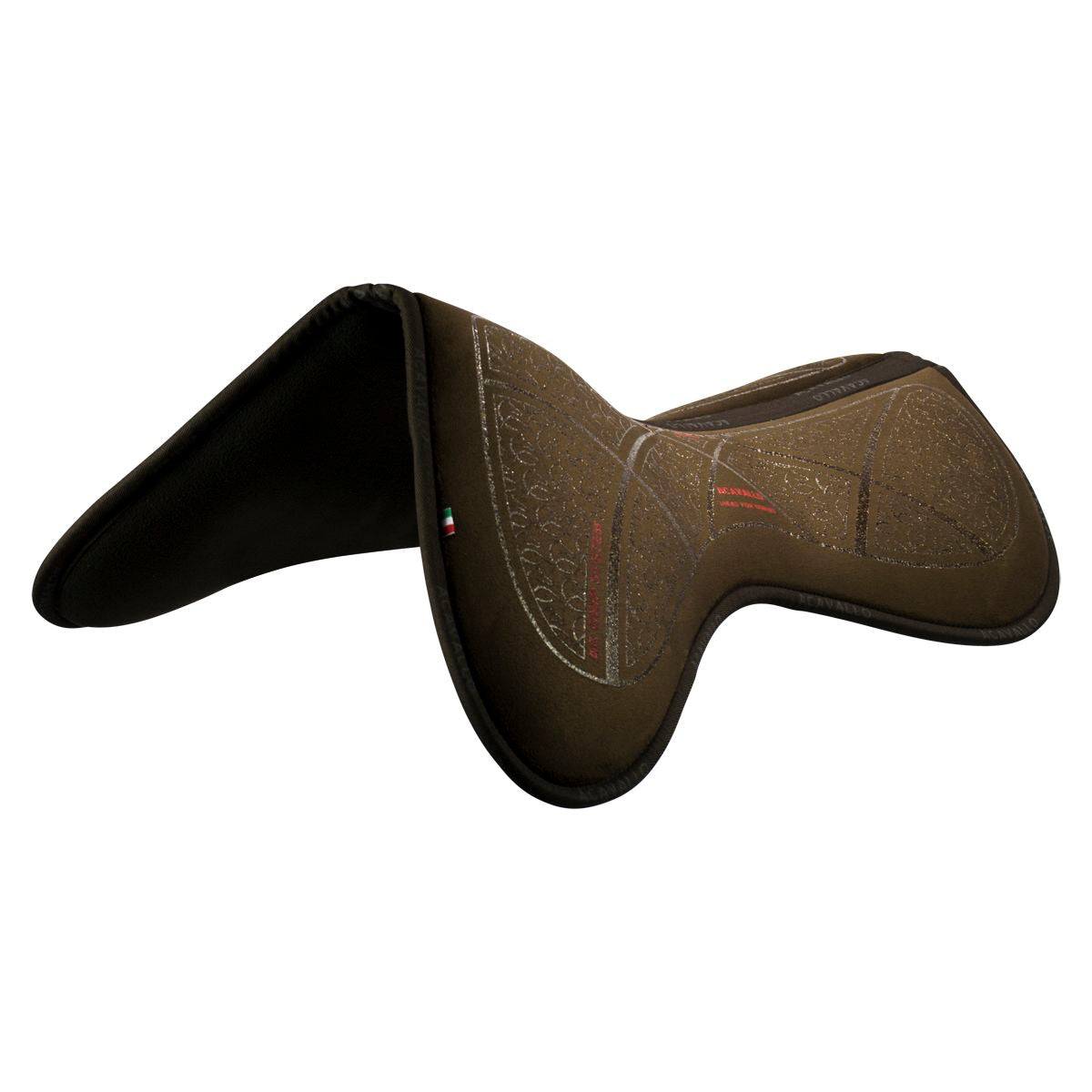 De toplaag is voorzien van een glinsterende siliconen antisliplaag die extra stabiliteit biedt en voorkomt dat het pad langzaam onder het zadel verschuift.