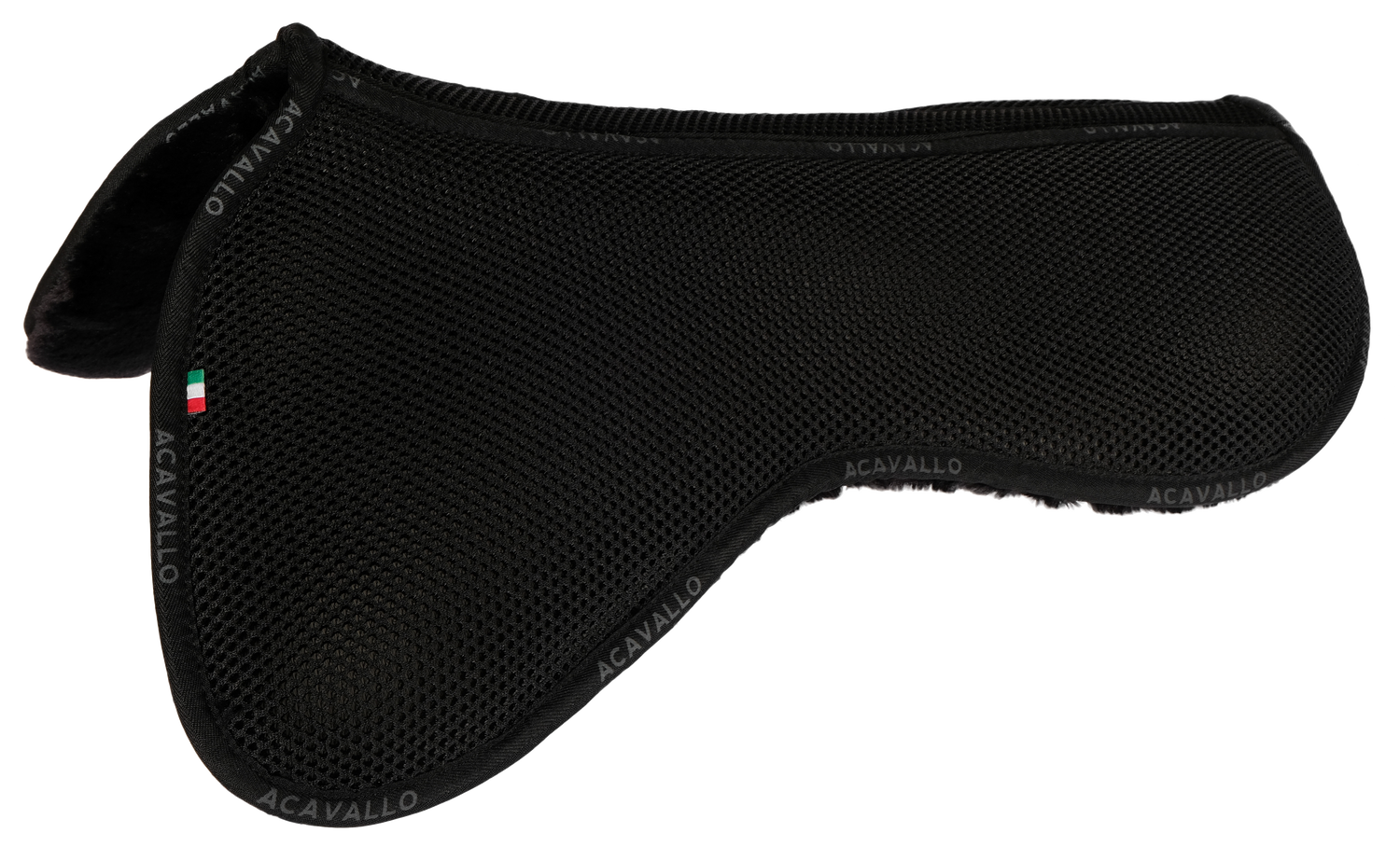 Spine Free, 3D Spacer Fabric, Memory Foam, C. C. Pad, Eco-Wool Underside (Jump) - the special shape and composition of these pads relieve the sensitive withers area and help to prevent problems by distributing weight evenly and improving the saddle fit. Memory foam absorbs shock, eliminates rubbing and friction and perfectly adapts to the individual contours of the horse’s body.