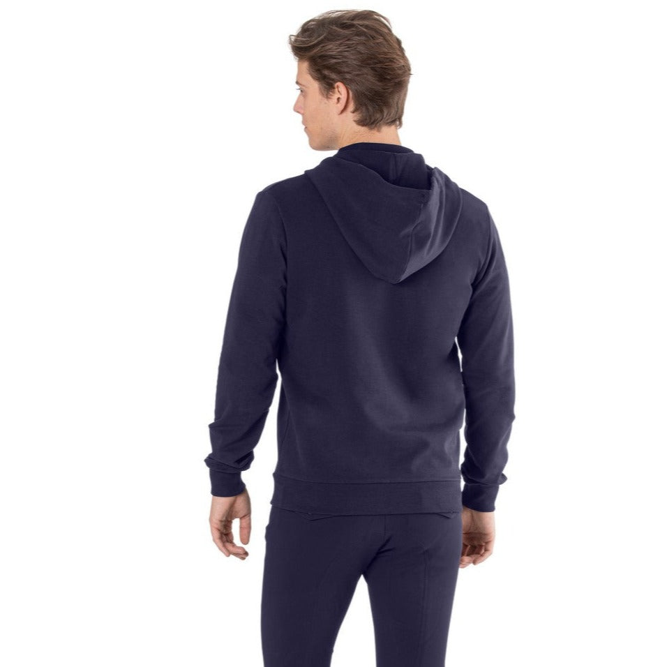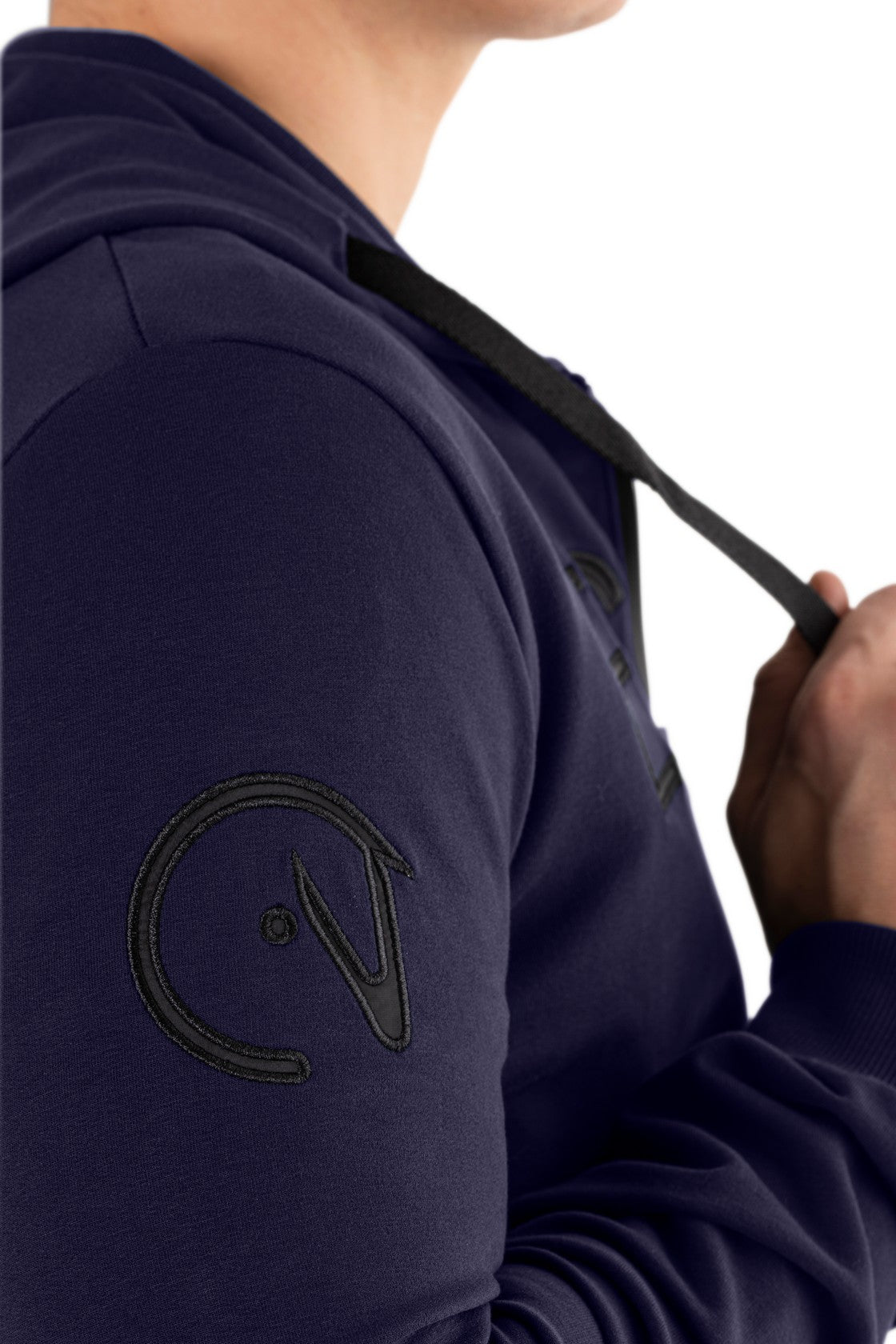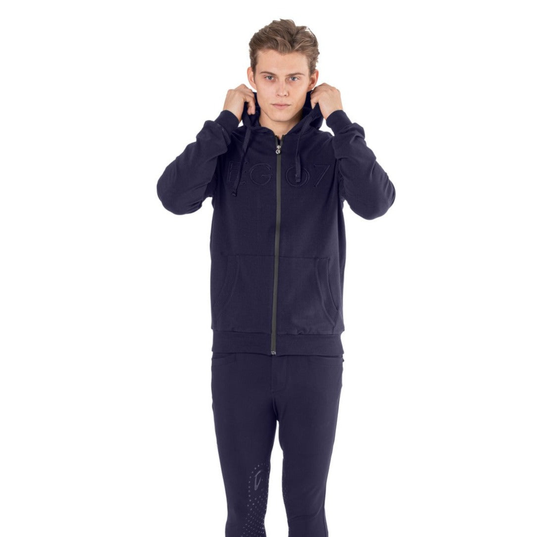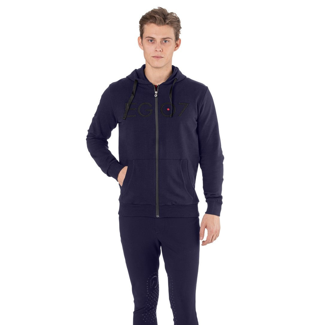 EGO7 Men's Zipped Sweater After-Riding - this sporty men's lightweight sweater is a great addition to the male equestrians wardrobe. Large Ego7 embroidery on the front gives it a great look whilst two large front pockets are ideal for keeping your hands warm when standing around at shows. Ribbed elastic sleeve ends and bottom ensure a great fit, whilst the large hood is a must have during the cooler months.