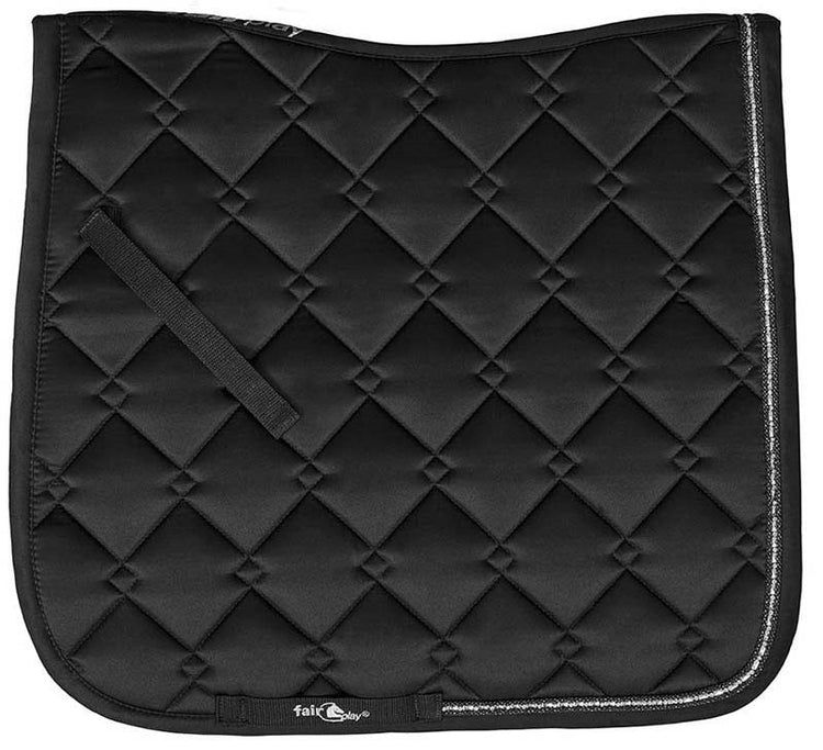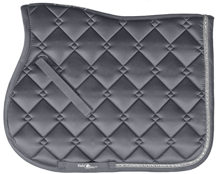Azuryt Saddle Blanket - the most glamorous saddle blanket currently on the market. It has it all - sophisticated looks, elegant detailing, superior comfort and a perfect fit. Made from satin with "diamond" quilt, this saddle blanket is one that will be fashionable for years to come. The double edging of shiny rope and jewel tape give it the ultimate look.