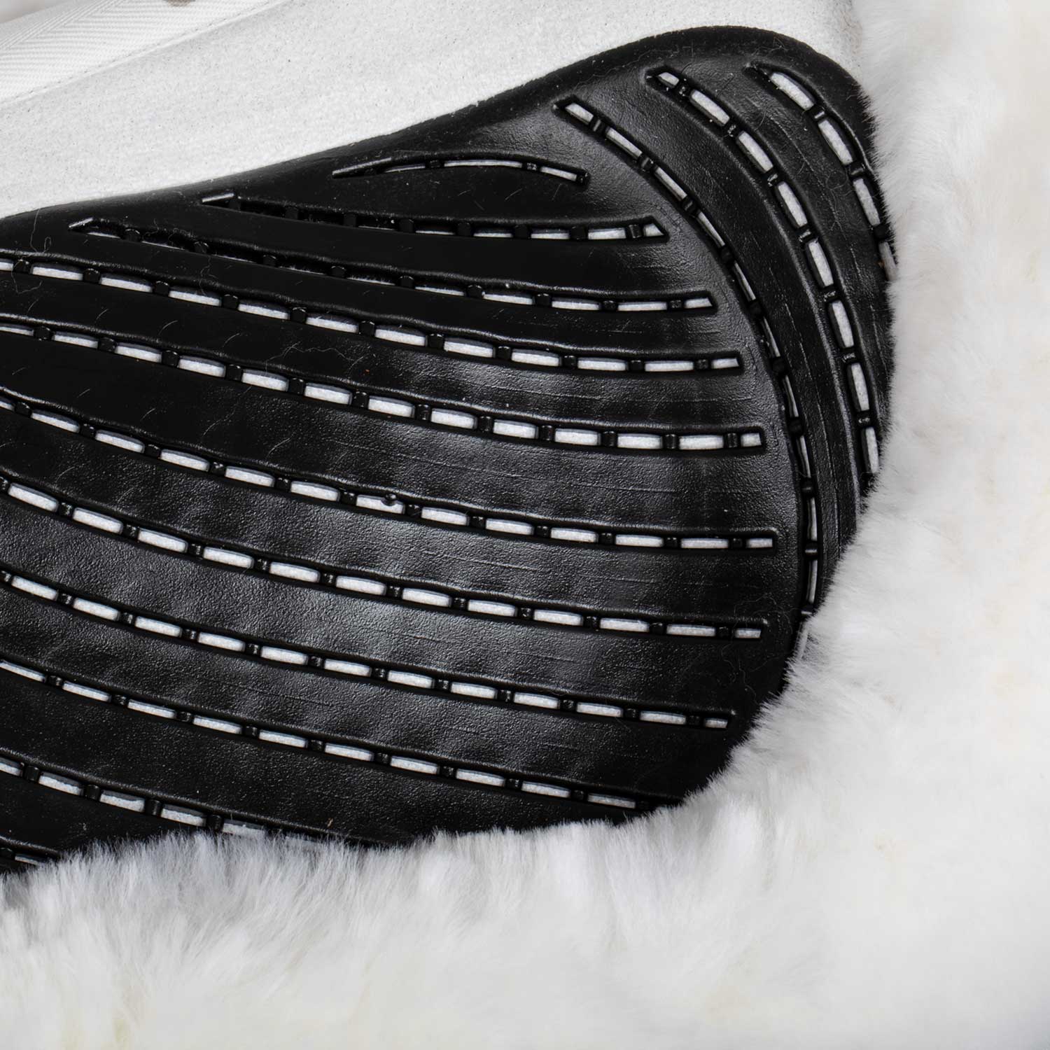 De schoonheid van de schapenvacht, gecombineerd met de functionele gel, zorgt voor een verfijnde en elegante uitstraling.