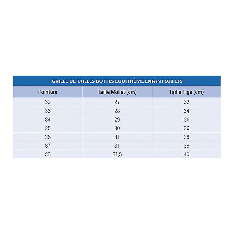 Kindermaten: 32-38, Hals: 32-40, Kuit: 27-31,5