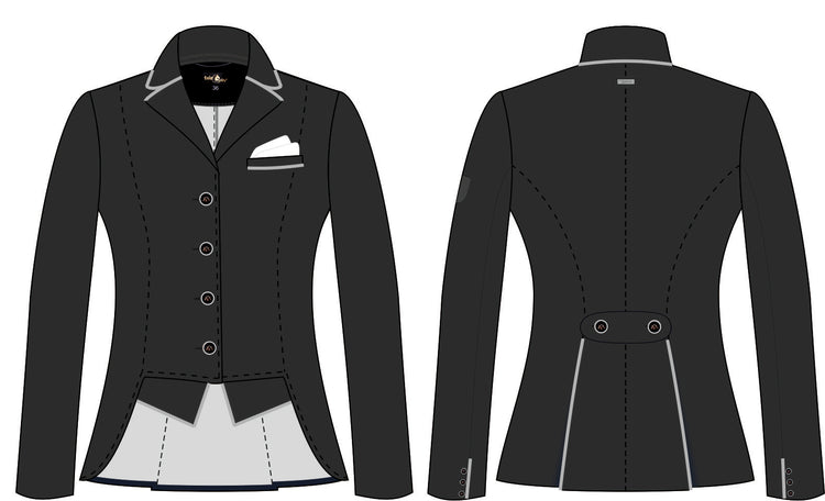 Show Jacket Judy - a stunning jacket with beautifully, well thought out detailing. The metallic piping adds a touch of bling without it being overpowering or taking away from the elegant cut of the jacket. Not only does this jacket look incredible, it's also been designed with the riders comfort in mind. Made from high quality, thin elastic, water resistant softshell fabric, it's ideal for just about all conditions. Air vents under the arm pits ensure adequate air flow.