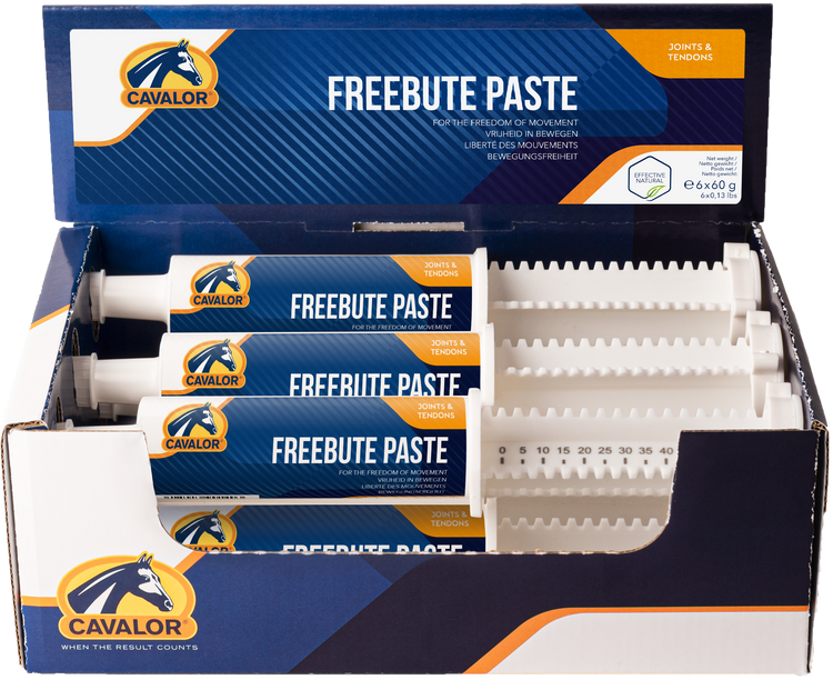 Cavalor FreeBute is verkrijgbaar in 2 vormen. Pillen, die ideaal zijn voor langdurig gebruik, of een pasta, die geschikter is voor incidenteel gebruik.