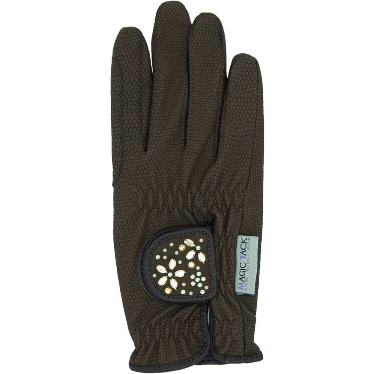 Hauke Schmidt A Touch of Magic Tack Riding Gloves - the perfect pair of riding gloves is an essential piece of equipment for all horse riders, if you can have the perfect gloves with a touch of bling then you have the style conscious, female equestrians dream! Through switchable patches, you have unlimited possibilities to create your unique and special riding gloves. Made from a new, technical PU material with a high Lycra content, the gloves are a superb fit and provide the correct amount of grip whilst offering complete comfort and flexibility. Highly breathable, the gloves and strong yet smooth and soft on your hands. The gloves without the patches are machine washable which makes them a practical choice for both professional and hobby riders.
