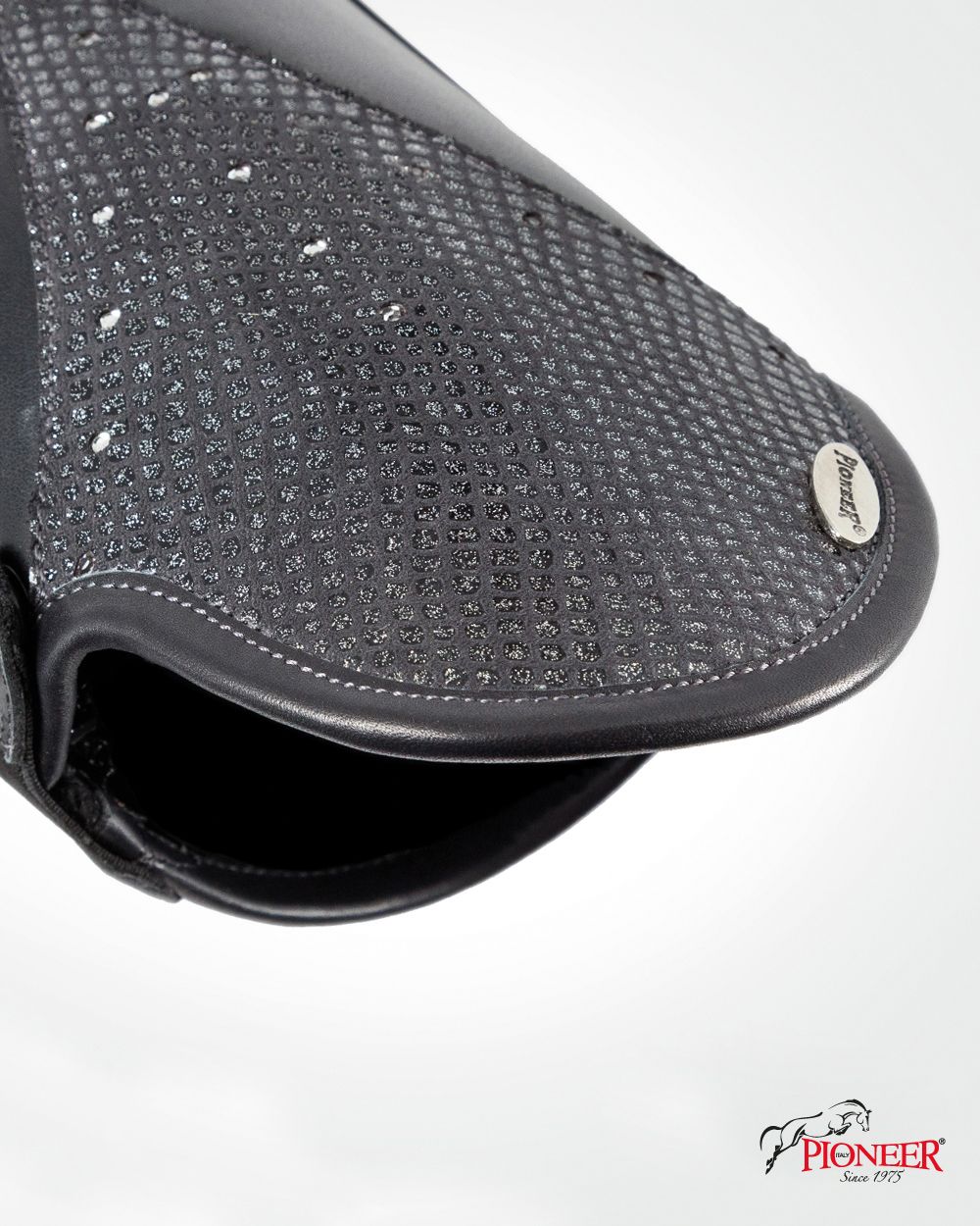 Boots Euterpe - Classic and yet that little bit different is that many riders are dreaming of. For the excellent design of these boots, Pioneer has added the right amout of glamour to a classic, functional riding boot. The combination of super-stretch leather with a back zip and a sideband in elastic allow for a slim elegant shape without compromising on comfort. For highlights, inlays of patterned material with Swarowski crystals in a matching colour have been placed at the mouth, the spur rest, on top of the foot and in the toe area.