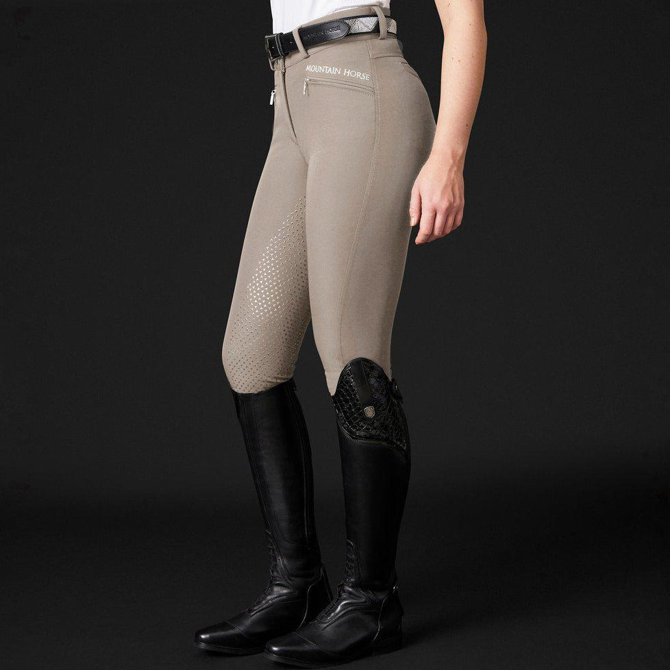 Mountain Horse Bryczesy Jeździeckie Diana Z Wysokim Stanem - Bryczesy Jeździeckie z wysokim stanem i pełną silikonową wkładką przyczepną. Kieszenie z przodu z zamknięciem na zamek błyskawiczny. Elastyczne mankiety na dole.