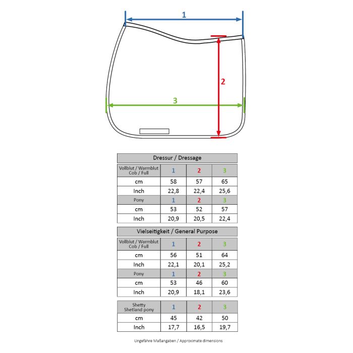 Size Charts HKM Saddle Blankets