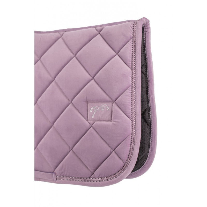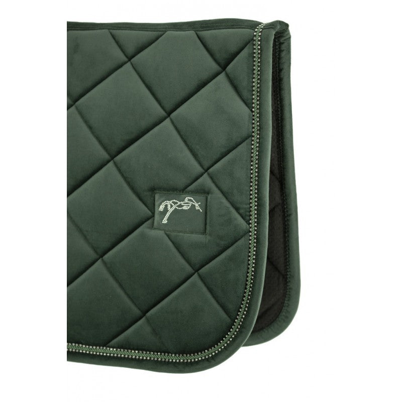 Penelope Collections New Strass Saddle Pad - this saddle blanket has diamond shaped thick padding, a velvet finish and is decorated with two lines of beautiful crystals and a twisted cord around the edge to give it a glamorous and sophisticated look.