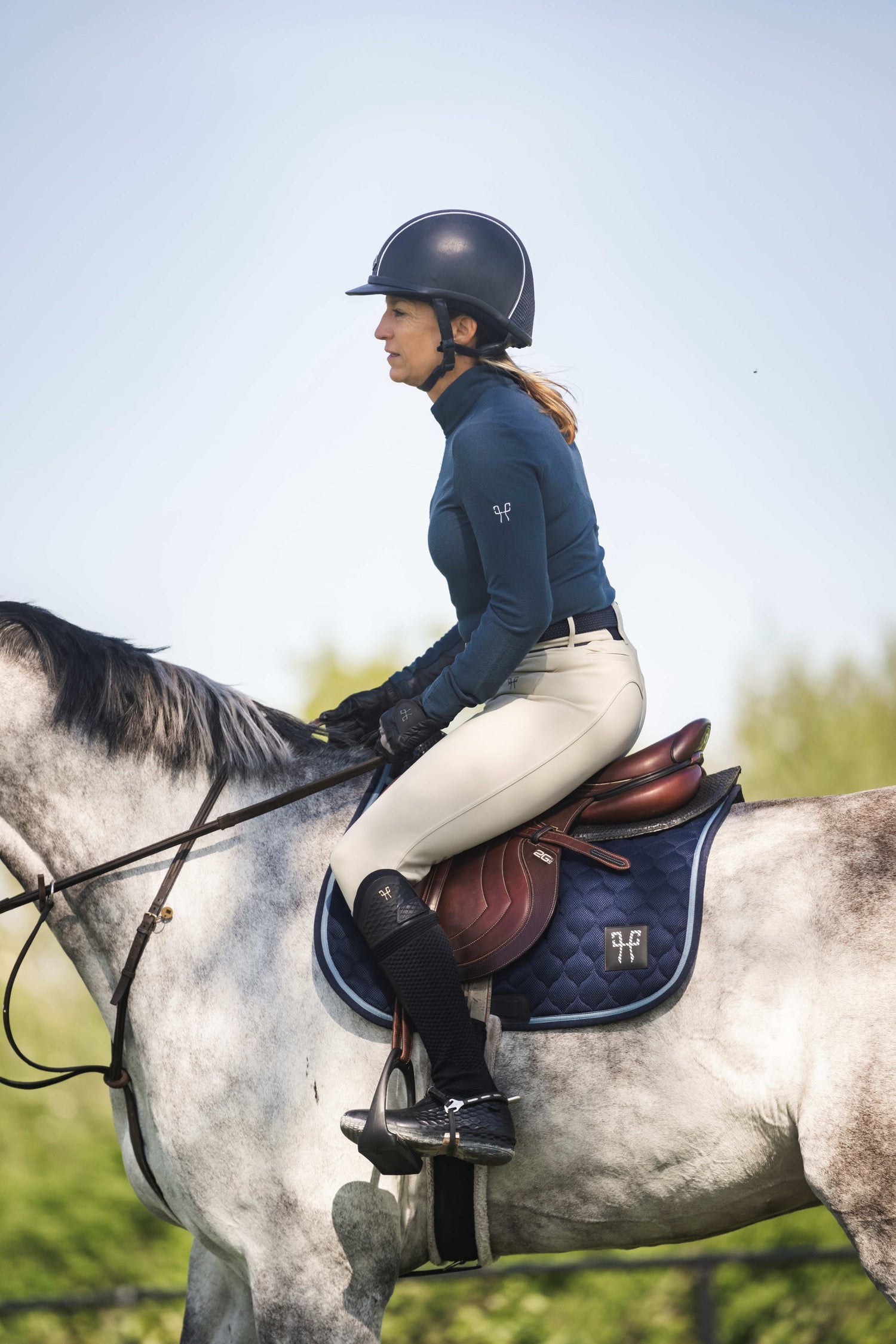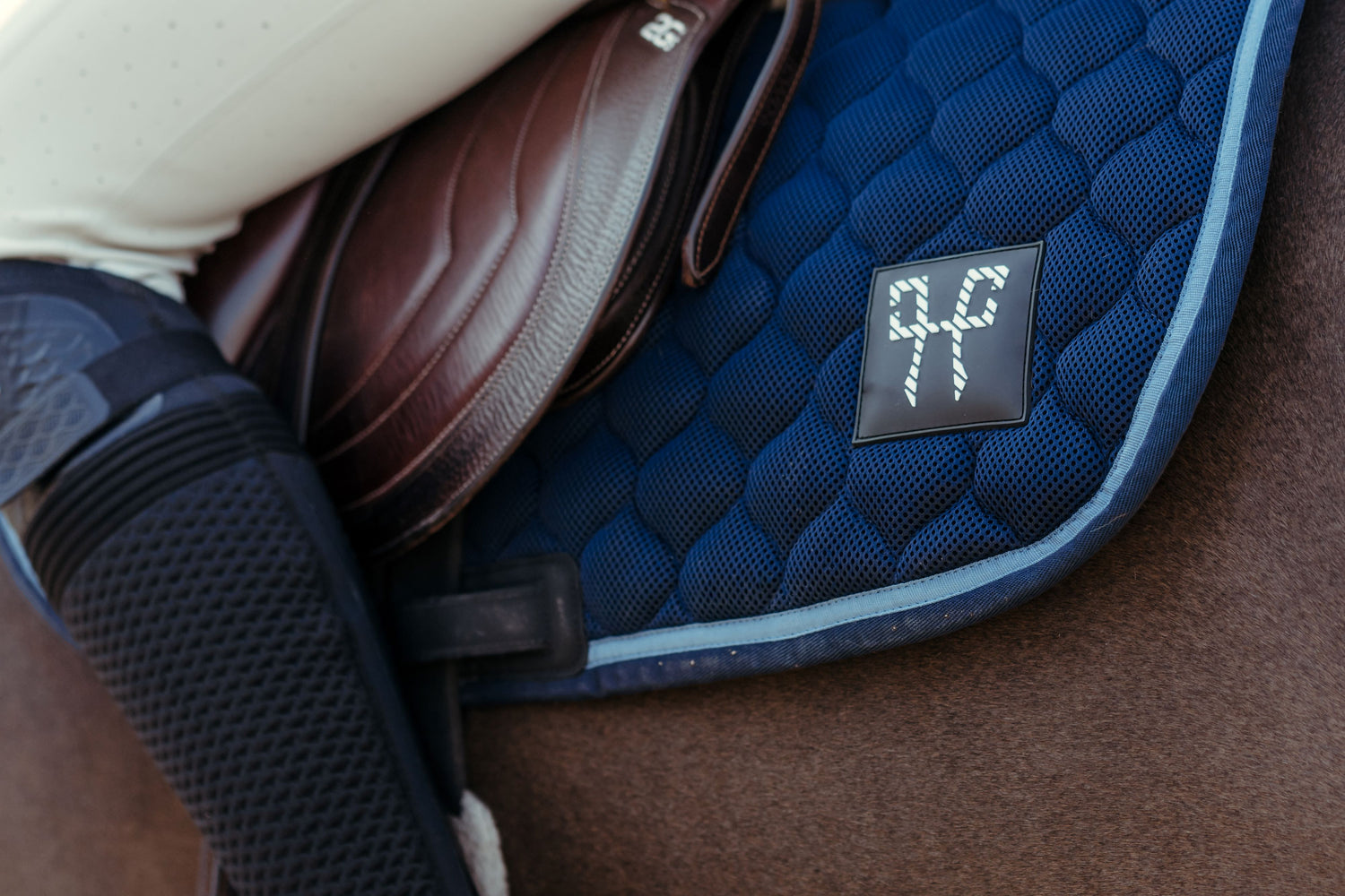 Horse Pilot Czaprak - genialny czaprak zaprojektowany z myślą o komforcie Twojego konia. Materiał siateczkowy 3D zapewnia, że czaprak pozostaje lekki i bardzo oddychający. Anatomiczny kształt doskonale dopasowuje się do pleców konia, zapewniając idealne dopasowanie, podczas gdy elegancka imitacja skóry na kłębach nie tylko wygląda świetnie, ale także zapewnia ochronę kłębu. Wyściełana siateczkową tkaniną poliestrową po stronie dolnej zapewnia miękki kontakt ze skórą konia, a czaprak jest wykończona kontrastującą lamówką i wstawkami dla eleganckiego wyglądu oraz małym logo Horse Pilot. Genialny czaprak do codziennego użytku lub jako wkładka na zawody.