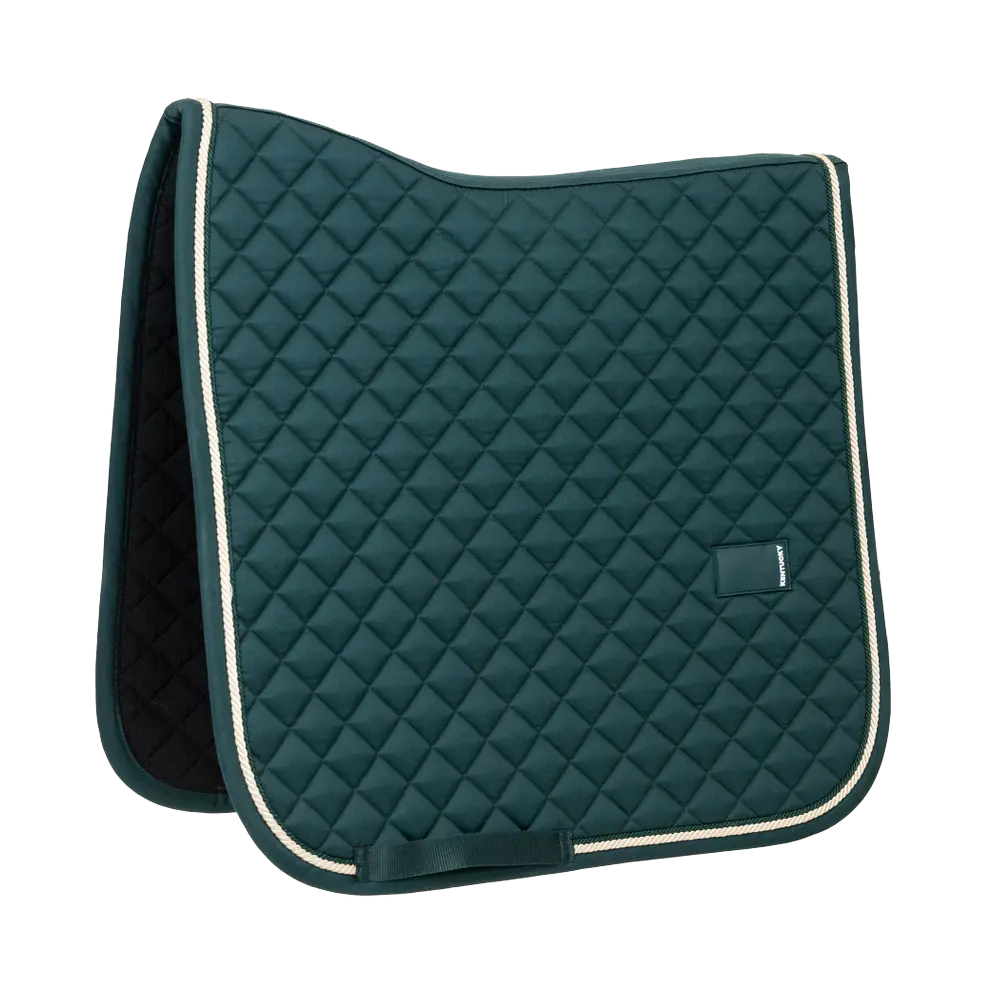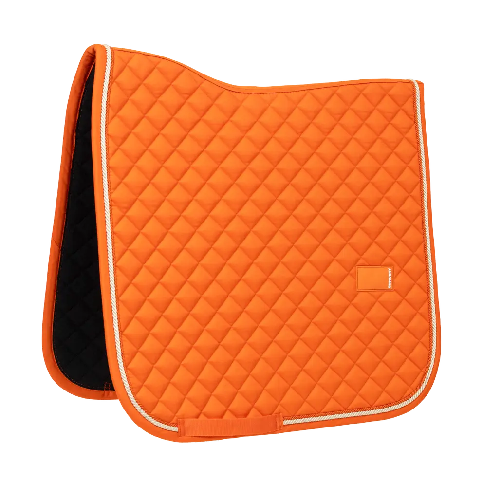 Kentucky Horsewear Diamond Rope Dressage Set - ride your horse in style with this gorgeous new matching set from Kentucky Horsewear. Featuring a classic saddle pad with small diamond quilting and a contrasting colored rope edging, it's the perfect saddle blanket for daily riding or competition. The matching ear bonnet features the same contrasting colored rope edging and has no visible logo, making it ideal for adding a sponsor/stable logo.