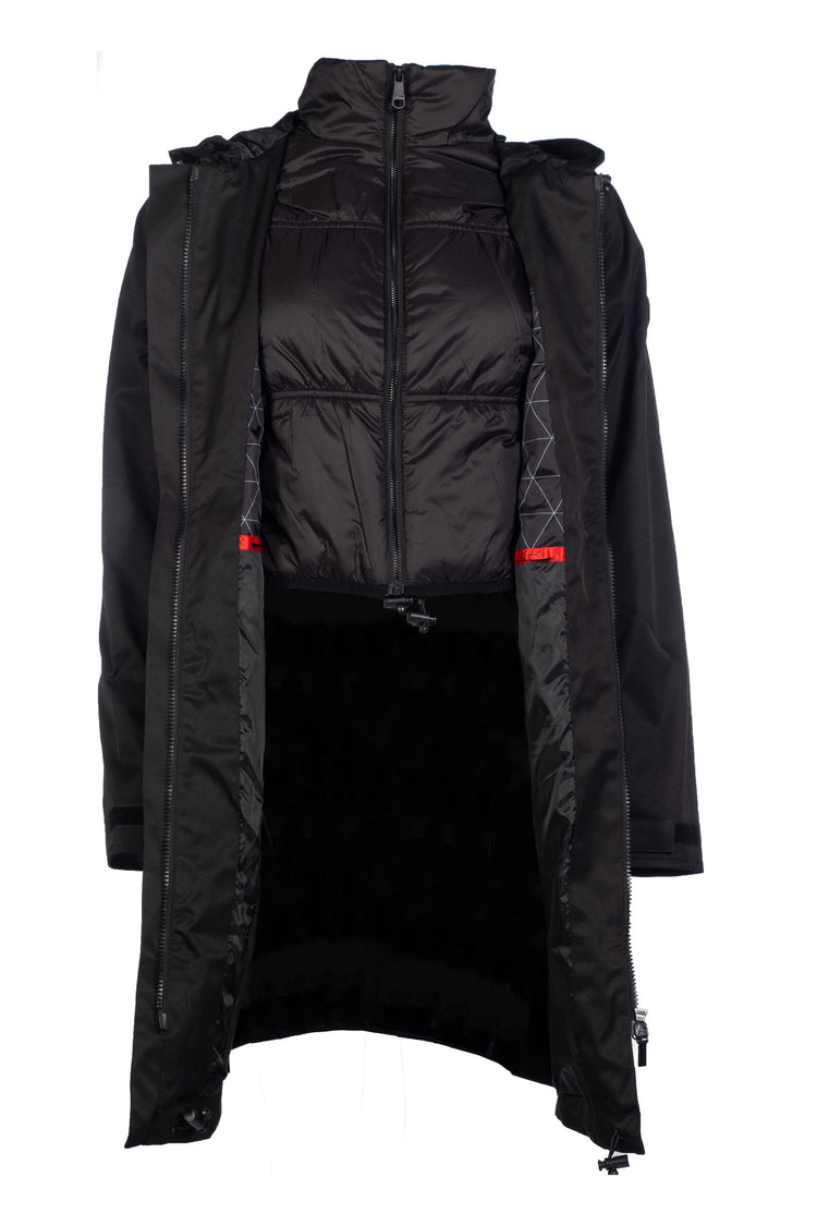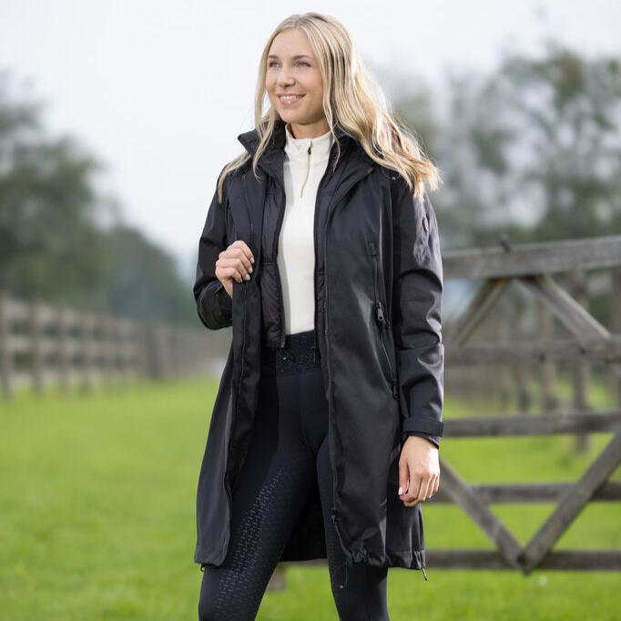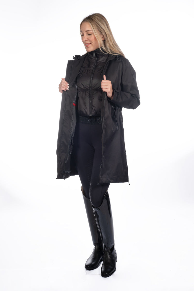 hkm parka Long waterproof horse riding coat Equestrian short padded vest Long rain coat for horse riding Waterproof horse riding coat long Best mid length equestrian rain jacket Waterproof horse riding jacket equestrian parka windproof equestrian jacket 2 in 1 equestrian jacket long riding coat black riding coat Horse riding rain coat for summer jacket with integrated vest
