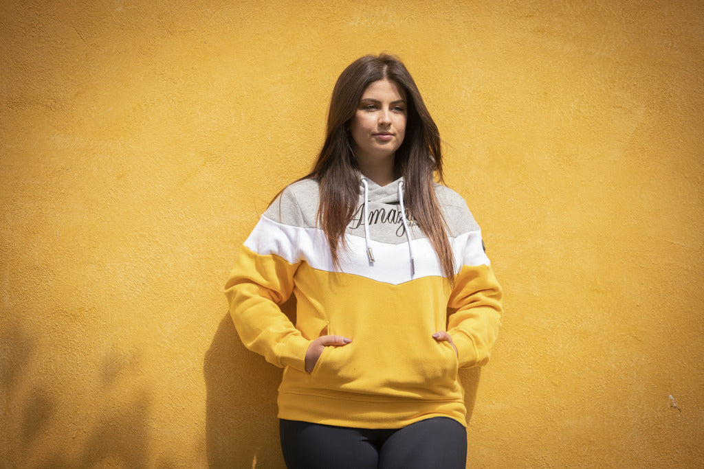 Penelope Collections ARTÉMIS Hoodie - a fleece lined sweatshirt that is so soft and snuggly that every lady rider would love to wear. This sweater will make you feel so warm and comfortable that you don't want to take it off. The material is amazing to the touch. You will absolute love it once you feel it. Three color blocks give it a bright and fresh look. This cozy hoodie is decorated with a Penelope logo patch on the arm, "Amazing Lifestyle" writing and Penelope logo on the chest, as well as a Penelope logo embroidered on the hood.