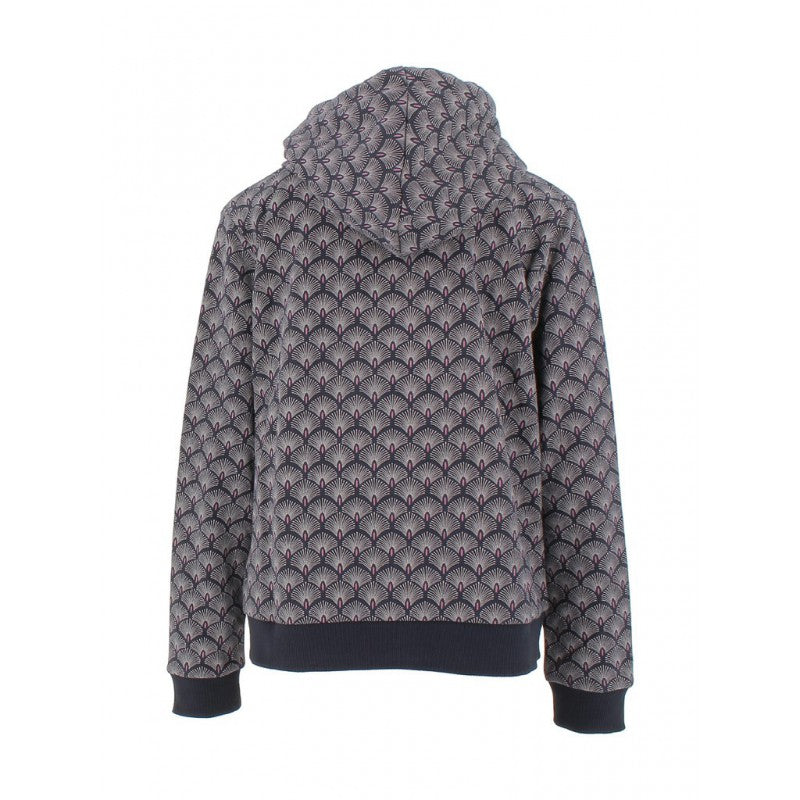 Penelope Rosy Hoodie - this fun print equestrian sweatshirt is great for daily riding or teamed with a pair of jeans. The interesting patterns combine beautifully with the Penelope logo on the chest in velvet navy to create a unique look. The sweater features a large front zip. The waistband and cuff bands are in a solid navy, as well as the thick fleece lining of the hood, which complements the pattern. A great addition to your equestrian and casual wardrobe!