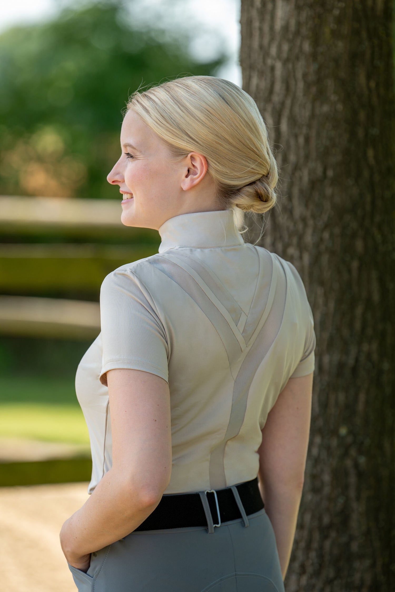 HKM Functional Shirt Nashville - the perfect training shirt for clinics or daily rides, this elegant riding top features a sparkly placket and a sporty mesh design on the back for added comfort as well as a great look!