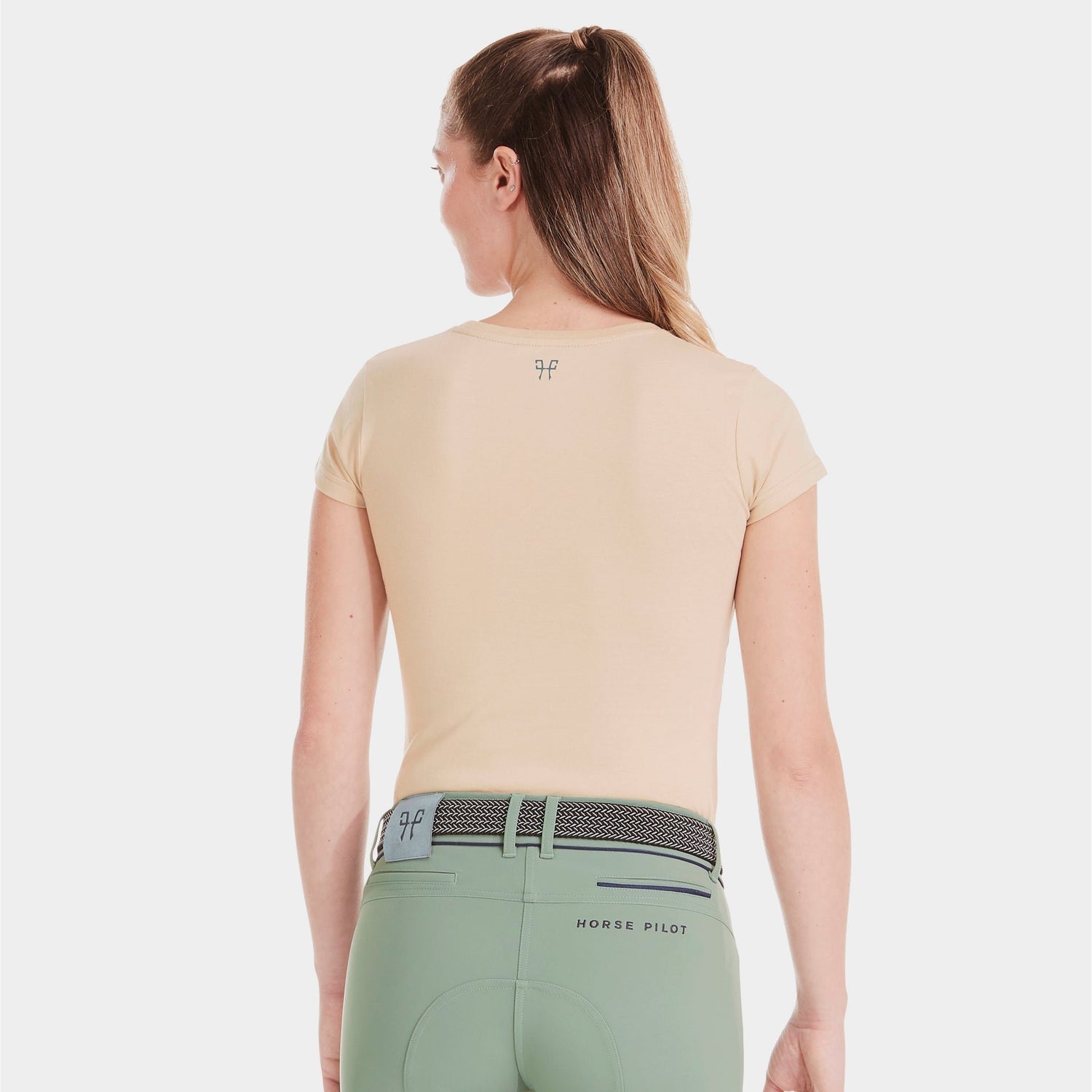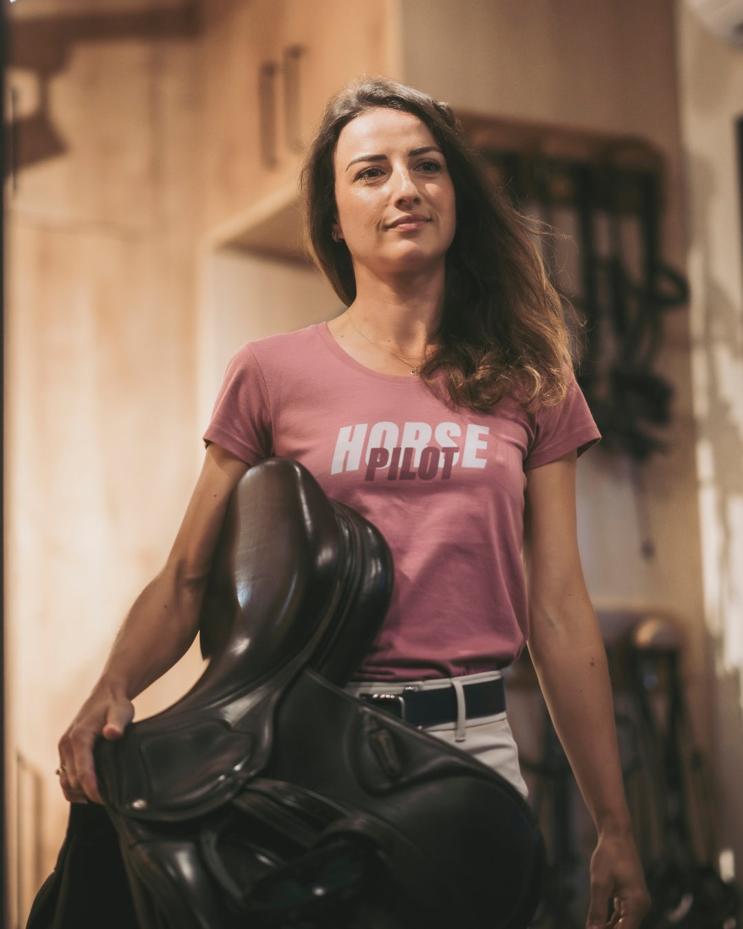 Horse Pilot Damska Koszulka - dla każdego jeźdźca i miłośnika koni! Zmieniona wizualnie koszulka z logo marki Horse Pilot na piersi, wykonana z ekologicznej tkaniny. Miękki i elastyczny bawełniany materiał organiczny zapewnia optymalny komfort. Gdy ją wypróbujesz, nie będziesz chciał wracać do innych!