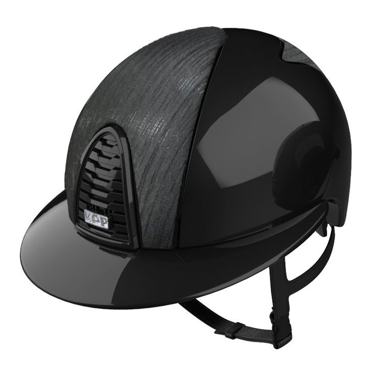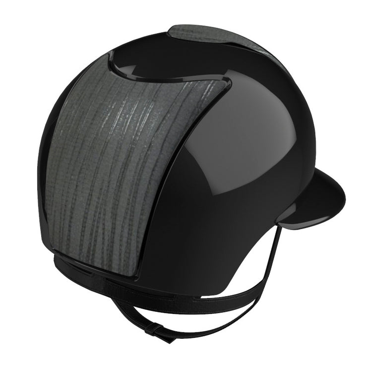 Kep Italian Riding Helmet Cromo 2.0 Polish Polo Visor with Vensa Black - a beautiful horse riding helmet in shiny black, featuring a chic polo visor and dazzling Vensa glitter front and rear insert. Made 100% in Italy, this helmet combines a sleek black finish with the sparkle of the Vensa glitter inserts to create a luxurious and eye catching look. The polo peak not only enhances the helmets style appeal, but also provides essential sun protection during the warmer months.