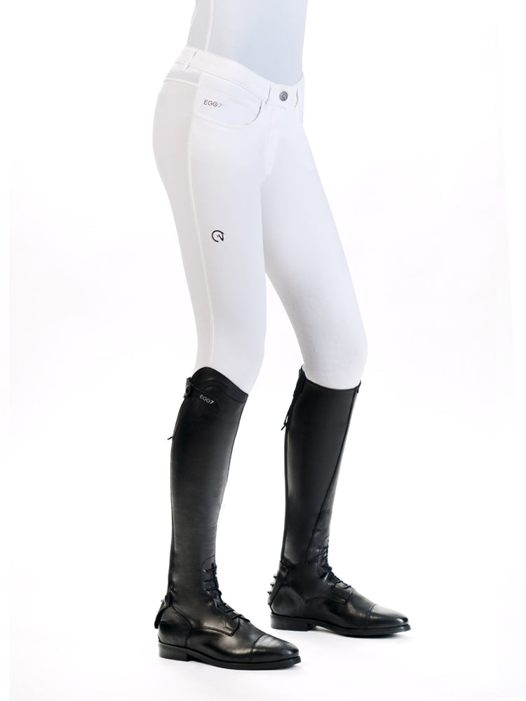Rewolucyjny materiał, 100% dzianiny wyprodukowanej we Włoszech, zapewnia idealne dopasowanie, podczas gdy tkanina o 4-ścieżkowym rozciąganiu gwarantuje swobodę ruchu, wsparcie i zachowanie kształtu, zapewniając niezrównany komfort! Bardzo oddychające, bryczesy zapewniają zwiększony kontakt z koniem podczas jazdy. Gdy tylko je założysz, staniesz się miłośniczką Ego7.