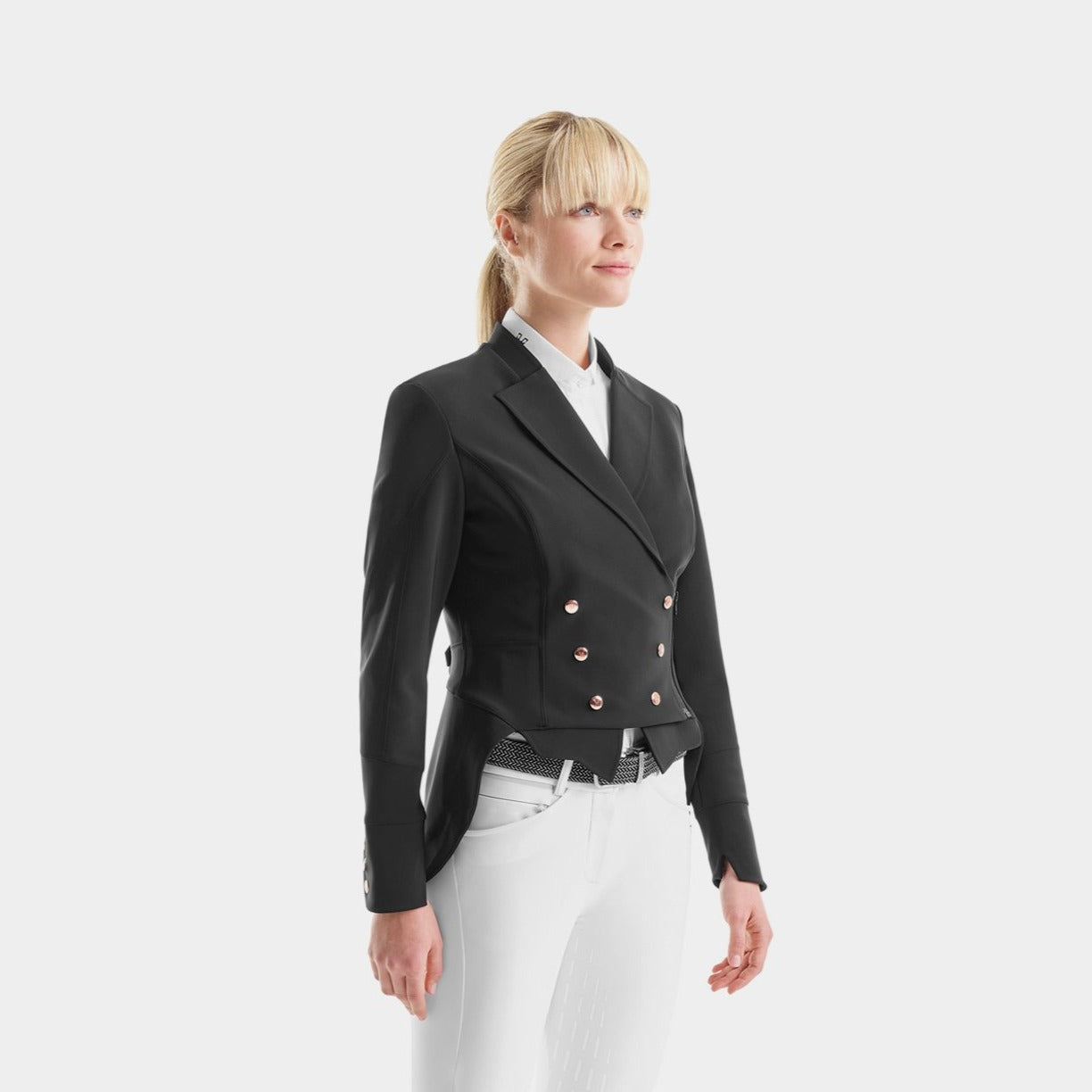 Został całkowicie przeprojektowany, a szwy są w pełni przyklejone. Podkreśla elegancję jeźdźca podczas występu w ujeżdżeniu. Rękawy są wyprofilowane, aby dopasować się do pozycji ramion jeźdźca. Efektem jest techniczny i elegancki frak, który spełnia oczekiwania najbardziej wymagających zawodników ujeżdżenia.