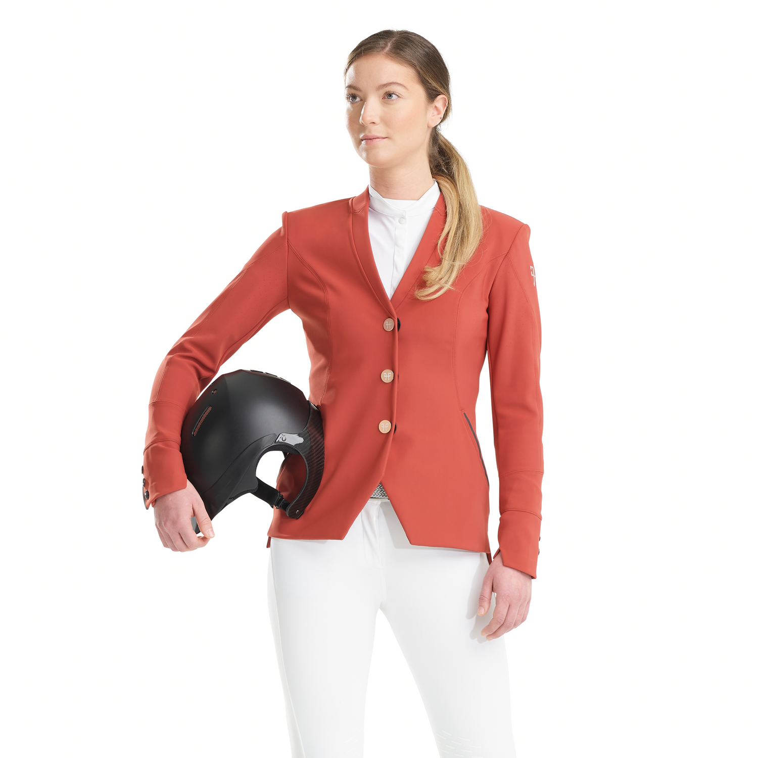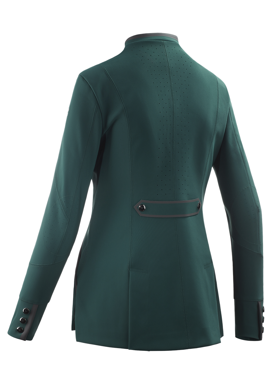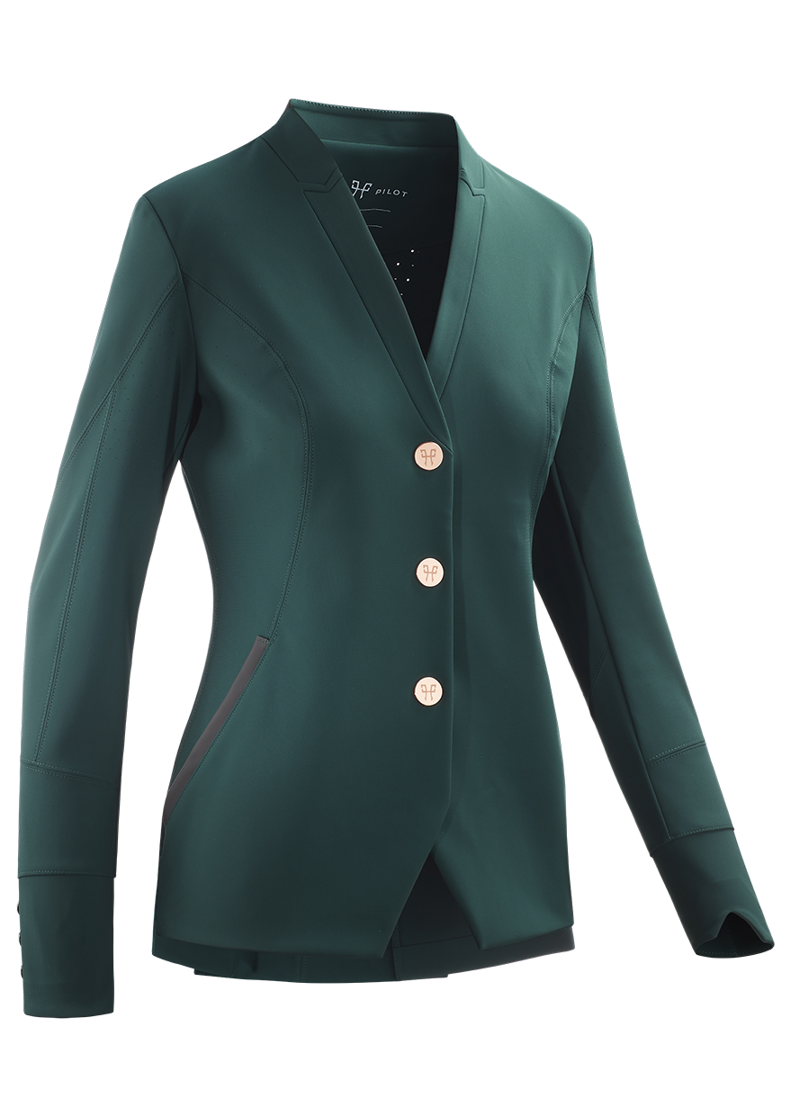 Horse Pilot Damski Frak Konkursowy Aerotech - to doskonały wybór dla każdej amazonki. Wykonana z najwyższej jakości materiałów, zapewnia nie tylko elegancki wygląd, ale także doskonałą wygodę i wydajność podczas zawodów. Dzięki innowacyjnej technologii Aerotech, frak jest lekki, elastyczny i oddychający, co pozwala na swobodne poruszanie się w siodle i zapewnia komfort nawet podczas intensywnych występów. Ten elegancki krój i staranne wykończenie sprawiają, że jest idealny do prezentacji na ringu. Frak Aerotech to niezbędny element garderoby każdej poważnej zawodniczki, która dba o każdy detal swojego występu.