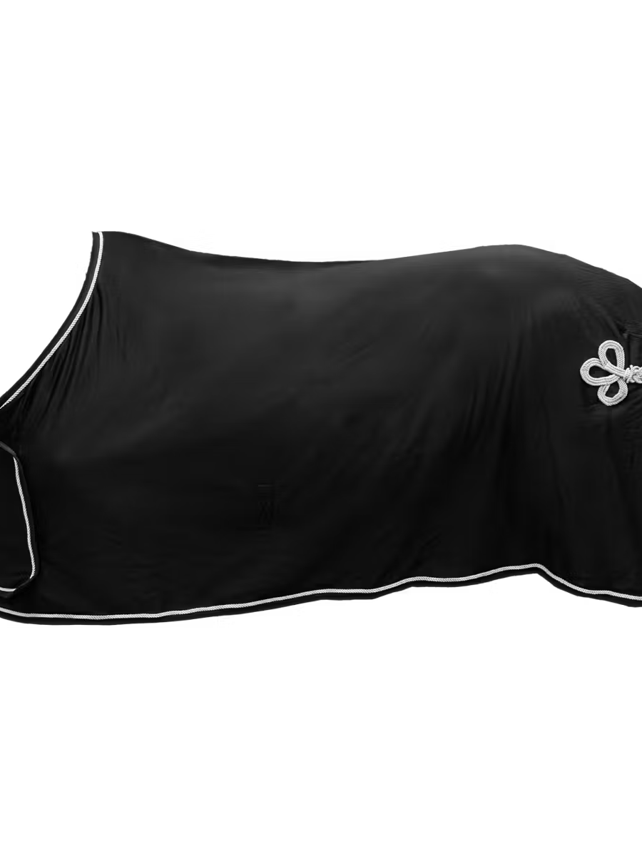 The soft, breathable fleece prevents overheating while keeping the horse comfortable. The rug features a single front closure that is discreetly hidden beneath a Velcro-attached patch, allowing easy embroidery of event logos, sponsor names, or stable branding. A secure tail strap ensures the rug stays perfectly in place, even during movement.