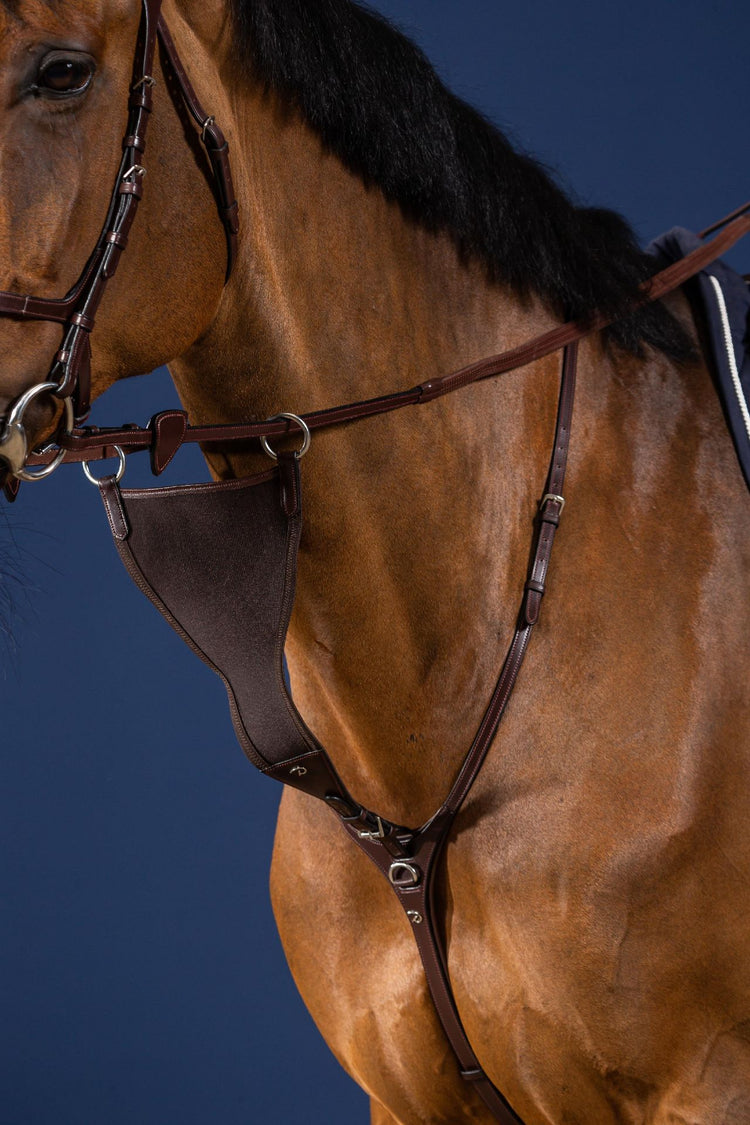 Dy'on Elastic Bib Martingale Attachment - a fully elastic bib martingale attachment from the Dy'on New English collection. The product is made with soft leather and is easily attachable to a yoke or breastplate.
