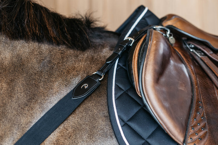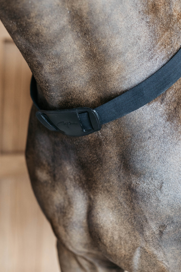 Dy'on Elastic Breastplate - this brilliant elasticated breastplate is ideal for keeping your saddle securely in place. Ideal for horses with extra broad shoulders, the elastic breastplate is lightweight as well as being very flexible, ensuring comfort and complete freedom of movement. Quick and easy to put on, the breastplate has two clips which attach to the D rings on your saddle. The front patch in the center of the breastplate is softly padded to provide extra comfort. Adjustable near the saddle for a perfect fit, it's ideal for daily use and competition.