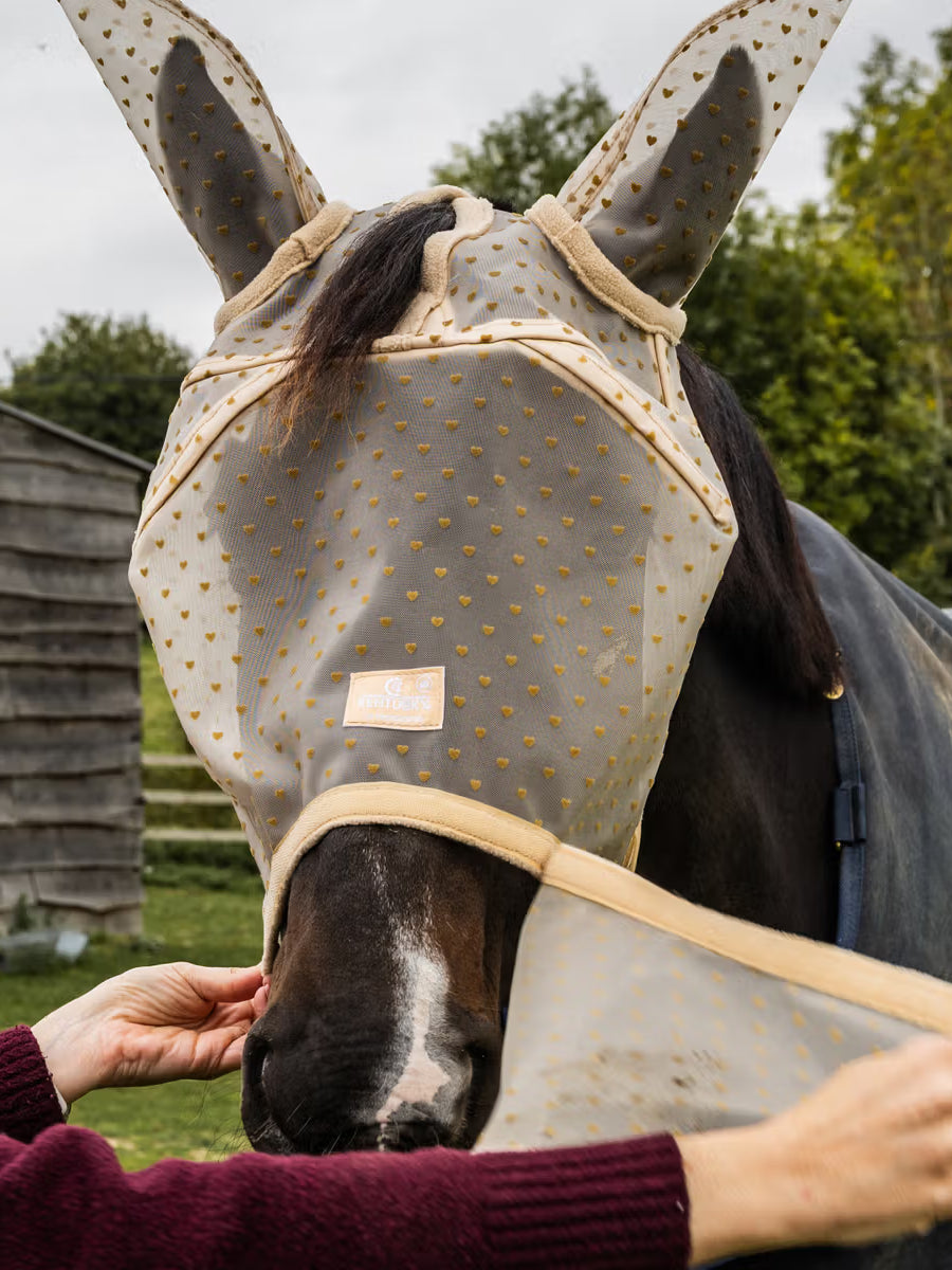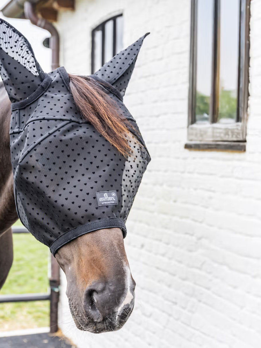 Kentucky Fly Mask Heart - provides full protection for the eyes, ears, and nose, making it an ideal choice for sensitive horses that require reliable insect protection during warm weather. Made from strong yet lightweight mesh fabric, the mask offers durability while maintaining excellent comfort and breathability.