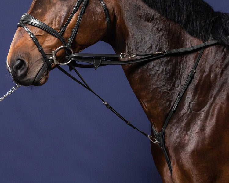 Dy'on Howlett Attachment - this product from the Dy'on New English collection is easy attachable to a yoke or a breastplate because of a snap hook. Furthermore, it is adjustable thanks to a roller buckle and the reins can be attached through a revolving snap.