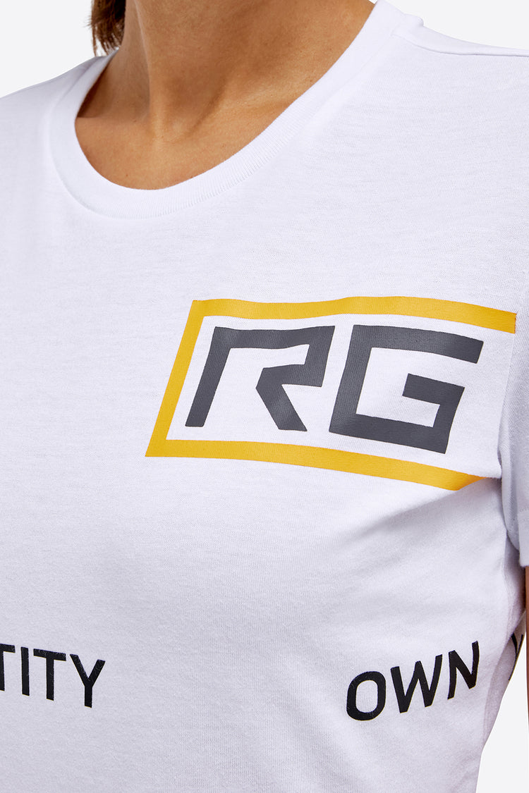 RG by Cavalleria Toscana OYI Women's Cotton T-Shirt - own your identity with this pure cotton equestrian t-shirt with sporty design details. Ideal for daily training, this shirt will absolutely become one of your favorite t-shirts for riding and working at the stable.