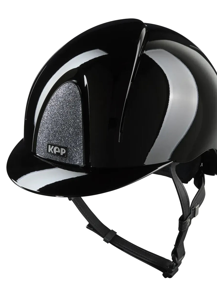 KEP Riding Helmet Smart Nova Polish Star Silver - rings a bold, modern aesthetic to KEP Italia’s newest generation of equestrian helmets. Designed for young riders and style-conscious equestrians, this model features a polished metallic silver front with a sparkling Star glitter insert, adding a touch of shine and glamour while maintaining a sleek, professional appearance for training, show jumping, dressage, and everyday riding. The painted ABS outer shell offers reliable impact resistance, while the high-impact EPS inner liner ensures maximum shock absorption, making this helmet the perfect blend of style, protection, and advanced performance technology. Integrated ventilation, an ergonomic extended neck guard, and lightweight construction provide superior comfort in all riding conditions, from high-intensity schooling sessions to long days at competitions.